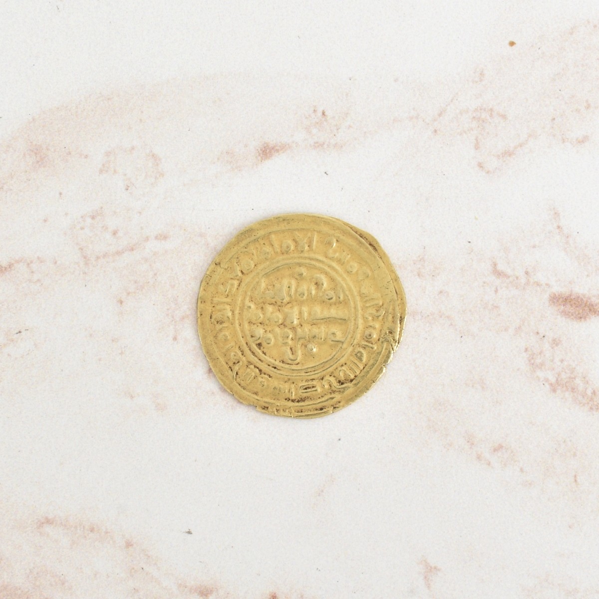 Ancient Islamic Gold Dinar Coin. Measures 20mm. Approx. weight: 2.44 grams. Condition: Good antique condition. Not professionally graded. Estimate: $200.00 - $300.00 Domestic Shipping: $40.00
