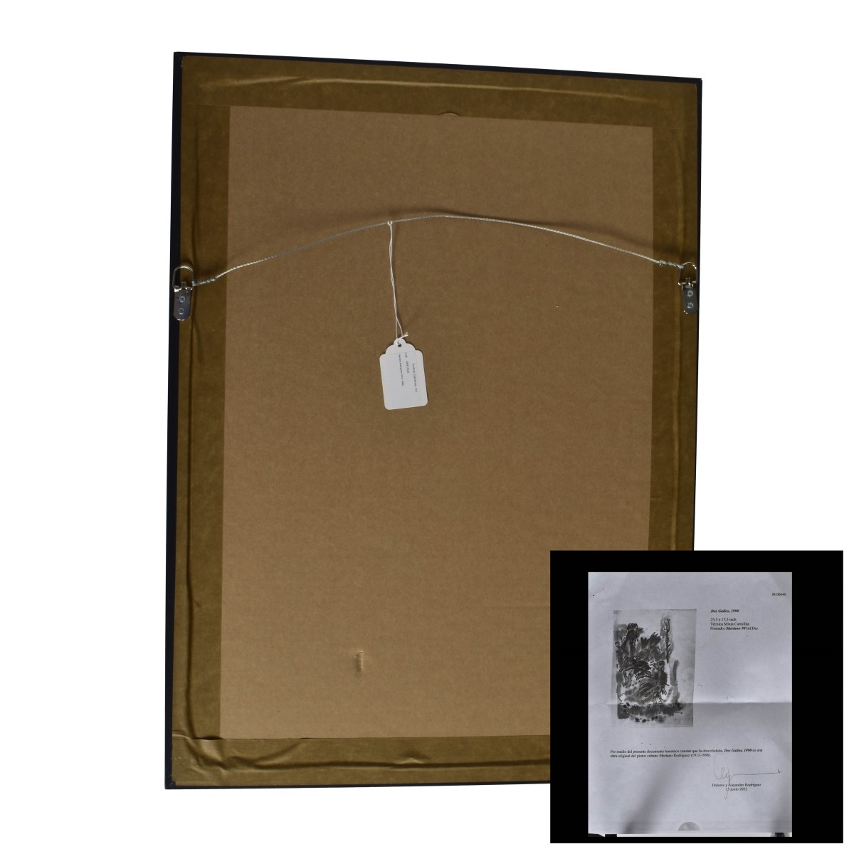 Mariano Rodriguez, Cuban (1912 - 1990) Gouache on Paper "Dos Gallos, 1990" Signed and Dated 1990 Lower Right. Copy of an original document included in the lot. Sight measures 24" x 14-1/2". Frame measures 30" x 22". Condition: Light foxing to the paper otherwise good condition. Estimate: $2000.00 - $4000.00 Domestic Shipping: $165.00`