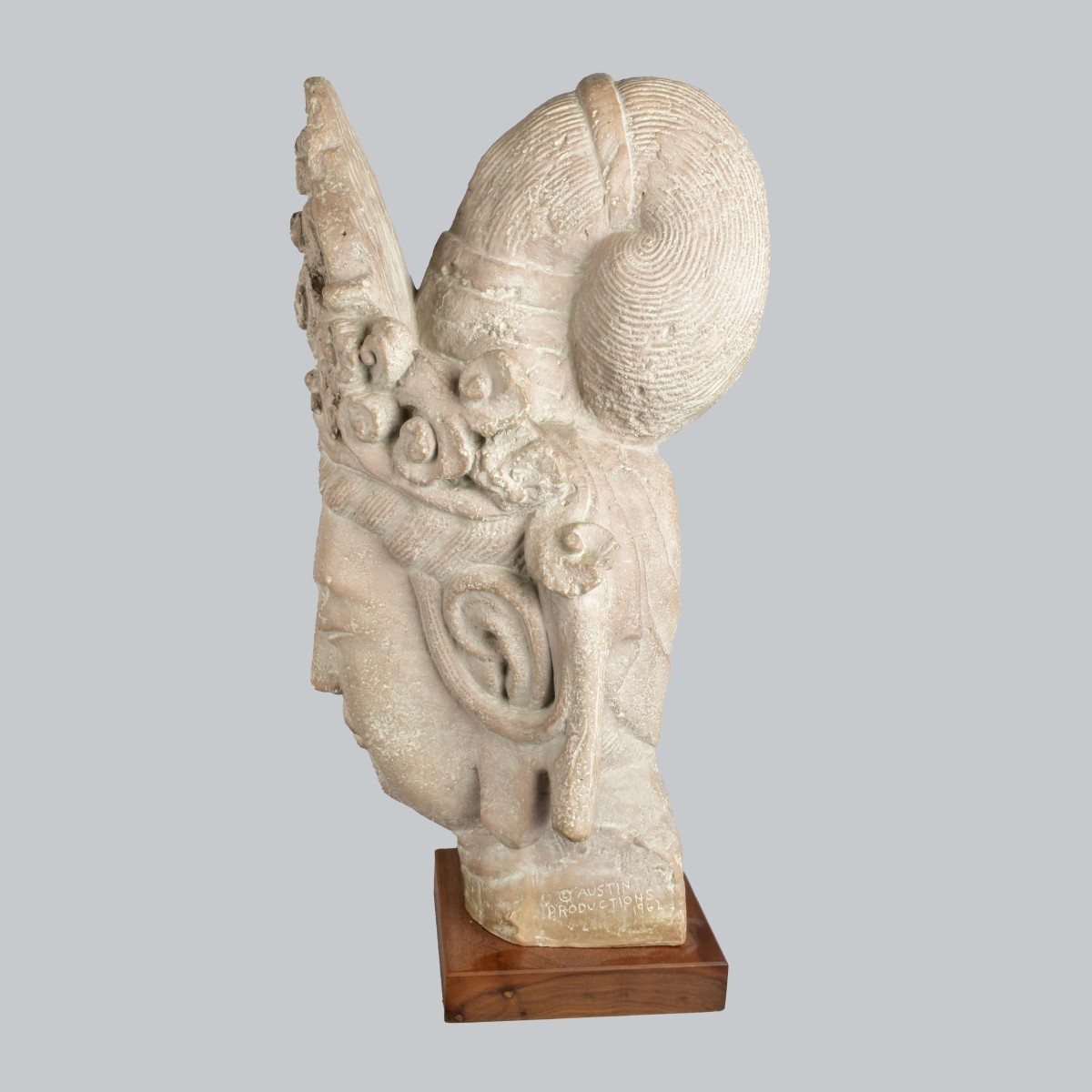 Austin Productions Guan Yin Buddha Head signed to left Bottom 1962. Measures 21"H x 10"W x 11" Condition: Good Condition Estimate: $50.00 - $150.00 Domestic Shipping: Third Party