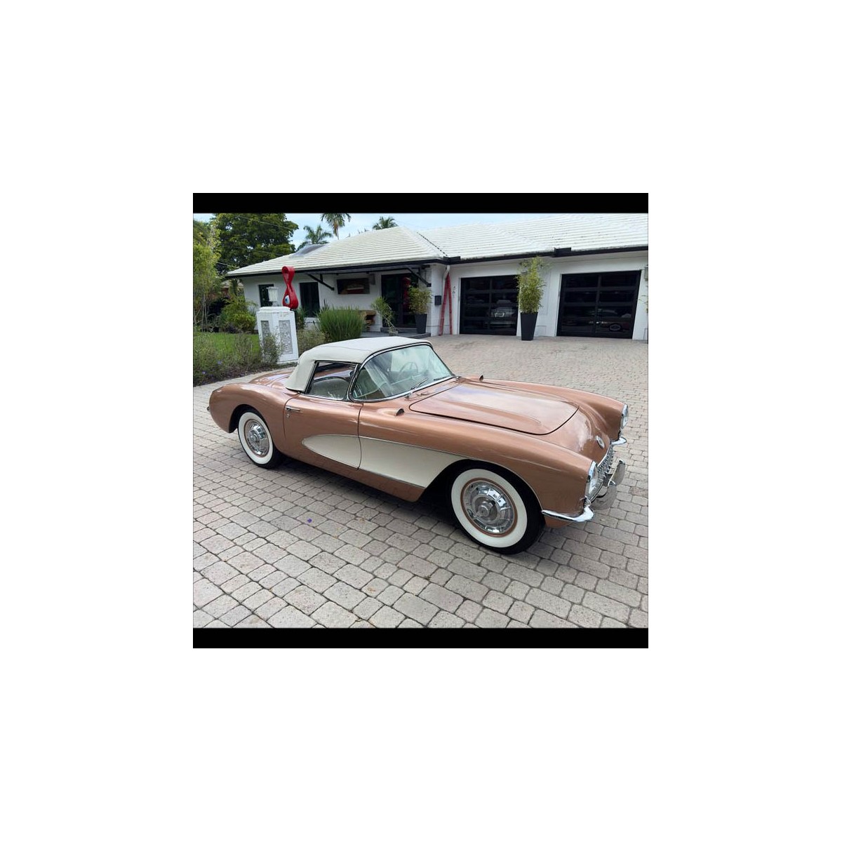 VIN E56S002303 TRANSMISSION 2 Speed Automatic MILEAGE 75 Numbers Matching and Restored Engine and Transmission Circa 2022 ConcoursLevel Interior Restoration New Date Coded Top One of 166 Built for 1966 in Aztec Copper/Beige 75 Miles Since Restoration The original Corvette, which breached into the sports car scene in 1953, was almost immediately thrust into a tumultuous environment. Not just in the marketplace, but more importantly, internally within Chevrolet and inherently GM. Over the three years following its release, a large amount of critical feedback, as well as low volumes and high pricing contributed to a lackluster performance both on the road and the balance sheet. Fortunately, the intention to establish the Corvette as the premier American sports car was backed by an important team of people, namely Chevrolet President Ed Cole, engineer Zora Duntov, and Harley Earl. Drawing from the knowledge and feedback collected since 1953, the 1956 C1 Corvette represented the first major redesign of the original Corvette. The 1956 Corvette received an exterior redesign, featuring the iconic "Cove" inserts on the sides, as well as smoother exterior lines and exposed head lights with chrome surrounds. The facelift also included many other standard features for the first time on a Corvette, such as external door handles, roll-up windows, and adjustable passenger seating. Options expanded to include power steering, a removable auxiliary hardtop that was virtually waterproof, and power windows. A V8 engine was now the standard option, with 3 variants available, featuring dual 4-barrel carburetion, higher compression ratio, and new manifolds with ìtwin pipeî exhausts. This was harnessed by either a 3-speed manual transmission, or optional Powerglide automatic. In total, GM manufactured only 3,467 Corvettes for 1956, making it the third-rarest model year in terms of quantity produced. However, its improved perception and influence undoubtedly contributed to the continuation of the marque. This 1956 Corvette is a stunning, fully restored, and numbers matching example of this important model year. Sporting its original color, Aztec Copper, this Corvette is one of only 402 produced for 1956 in this shade. Including its original Beige interior in factory-fresh restored condition, it is reportedly one of only 166 to be built with this overall specification. As noted in a previous seller's advertisement included with this lot, this Corvette is claimed to have lived amongst an extensive private collection, housed within a purpose-built building for over 25 years. It is believed that the frame-off restoration and repaint was performed in 1985, however, much of the interior restoration was completed over the past few years by the current owner. The majority of the interior restoration parts were sourced from well-known upholsterer, Al Knoch Interiors, including the seats, door trim, carpets, and dashboard. The interior gauges are original with a rebuilt speedometer, however the clock is noted is inoperable. The original Wonderbar radio is still present and functional, including reception for FM radio. The exterior convertible top is a brand new unit from Al Knoch, which includes a date stamp and the wheels are wrapped period-correct whitewall tires from American Classic. This example was also originally equipped with option #473, the power folding top, however it is currently inoperable at this time. It is powered by the original, numbers matching 265ci/225hp 2x4bbl solid-lifter V8 engine, channeled through the original matching 2-speed Powerglide transmission. Both underwent restoration in 2022, with receipts detailing the extent of the work, and have since covered merely 75 miles. An original 3-speed manual transmission is also available to purchase alongside this lot for an added fee. Condition: Offered "As Is, Where Is" without warranties expressed or implied of any kind. For additional photos, videos or information, please contact info@assettomarquee.com, assettomarquee.com or the gallery at info@kodner.com or 954.925.2550 IMPORTANT NOTICE FOR CAR BIDDERS ONLY: 10% buyer's premium available to phone bidders only. Please contact Kodner Galleries at 954.925.2550 M-F 10-5 EDT to register to bid. Bid deposit is required. Estimate: $70,000.00 - $100,000.00 Domestic Shipping: Buyer to arrange shipping