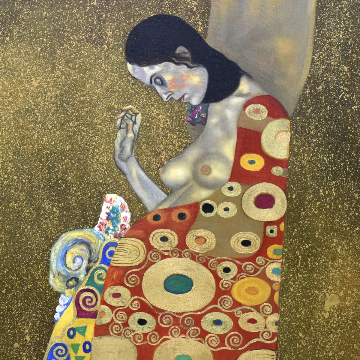 After: Gustav Klimt, Austrian (1862 - 1918) Acrylic on Canvas "Portrait of a Nude Woman" Signed Lower Right. Measures 39-1/2" x 39-1/2". Frame measures 42-3/4" x 42-1/2". Provenance: The Orianne Collins Collection. A large portion of proceeds of this sale will be donated to Ms Collinsí charity of choice, the "Never Give Up Foundation" which fills in the gaps needed to build a more inclusive future for those with disabilities like Spinal Muscular Atrophy. Condition: Good condition. Estimate: $200.00 - $600.00 Domestic Shipping: Third party