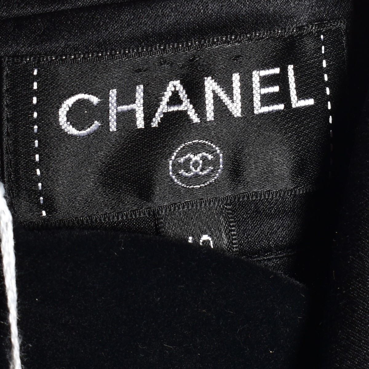 Chanel Black Silk Blouse. Size 38. Made in Italy. Measures 24"L. Serial # P54194V14874. Provenance: The Orianne Collins Collection. A large portion of proceeds of this sale will be donated to Ms Collinsí charity of choice, the "Never Give Up Foundation" which fills in the gaps needed to build a more inclusive future for those with disabilities like Spinal Muscular Atrophy. Condition: Good Condition, Inside back lower something white. Does not show through to outside. Estimate: $200.00 - $500.00 Domestic Shipping: $42.00
