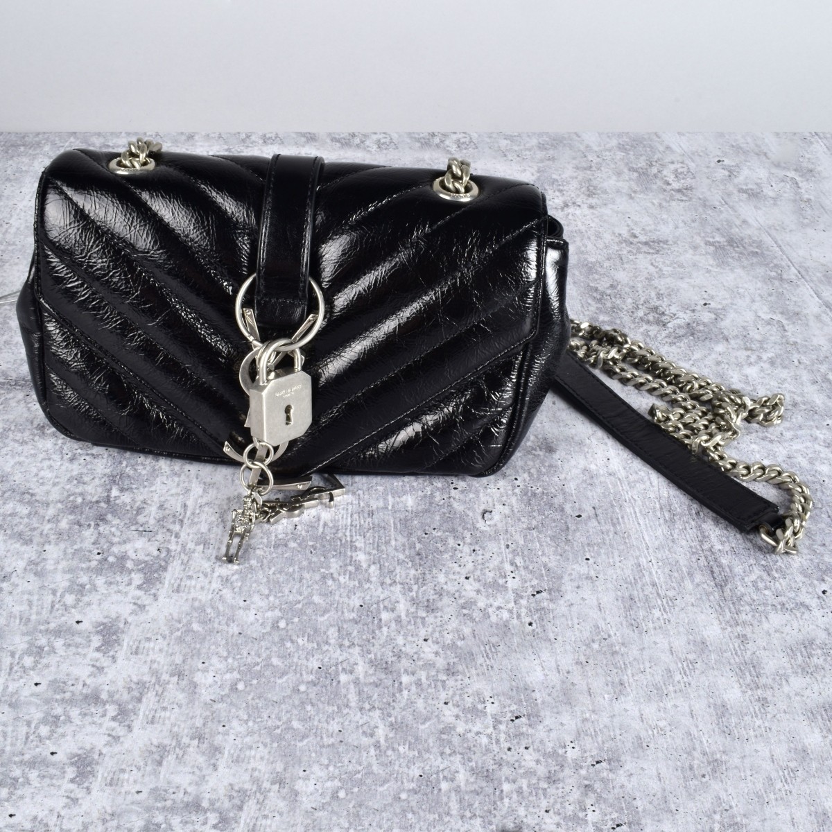 Saint Laurent Calfskin Matelasse Monogram Classic Punk Bag. Silver tone hardware. Stitched on interior. Measures 4" x 6-3/4" x 1-3/4". Provenance: The Orianne Collins Collection. A large portion of proceeds of this sale will be donated to Ms Collinsí charity of choice, the "Never Give Up Foundation" which fills in the gaps needed to build a more inclusive future for those with disabilities like Spinal Muscular Atrophy. Condition: Good condition. Estimate: $1000.00 - $1500.00 Domestic Shipping: $45.00