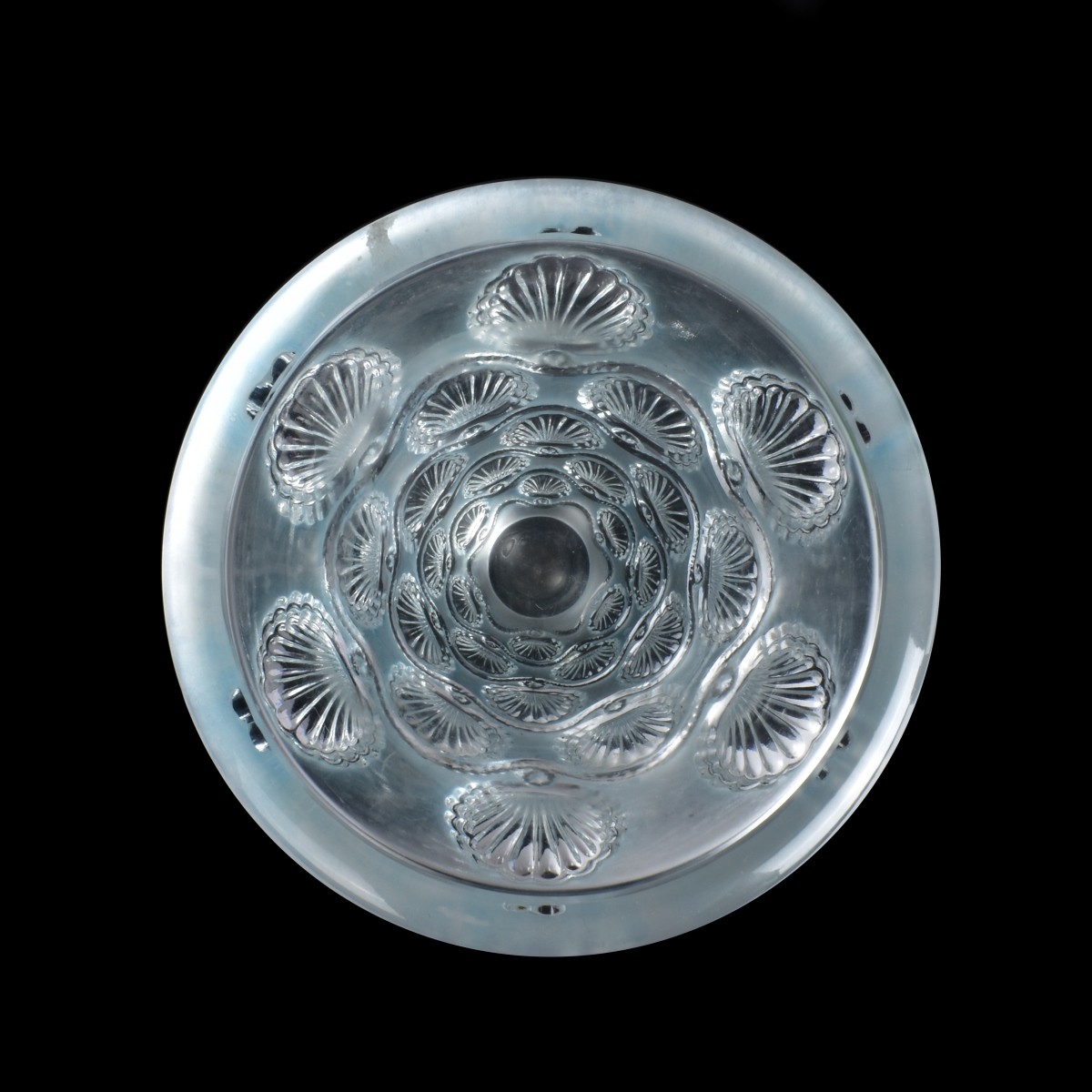 Rene Lalique "Cancale" (Blue) Crystal Vase. Signed "R. Lalique France" on the base. Measures 12" x 8-1/4" diam. Provenance: The Orianne Collins Collection. A large portion of proceeds of this sale will be donated to Ms Collinsí charity of choice, the "Never Give Up Foundation" which fills in the gaps needed to build a more inclusive future for those with disabilities like Spinal Muscular Atrophy. Condition: Good condition. Estimate: $1000.00 - $2000.00 Domestic Shipping: Third party