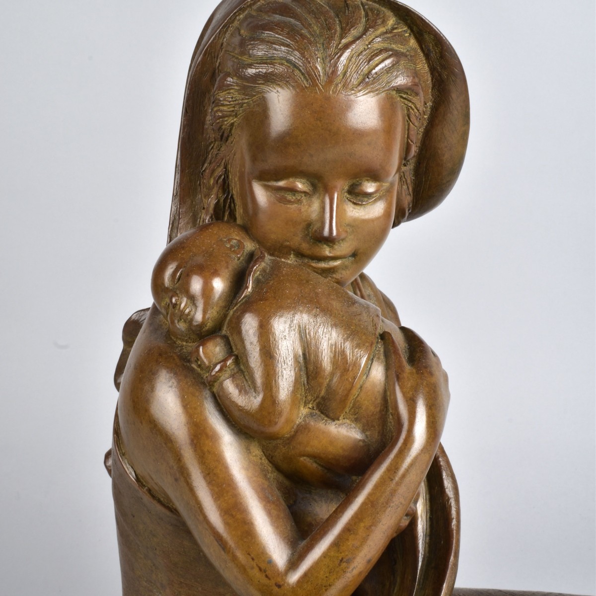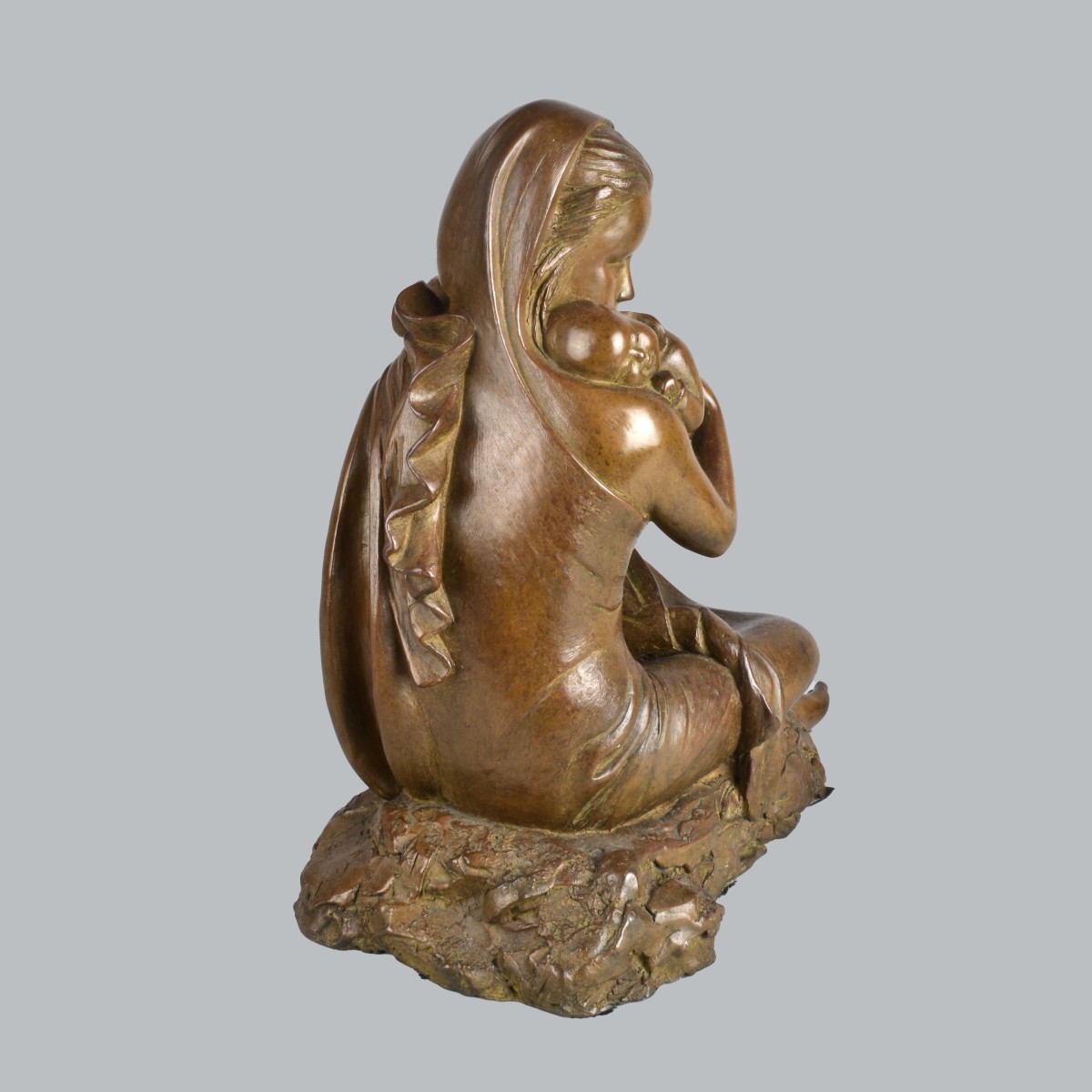 Large 20th Century Art Nouveau Bronze Sculpture "Seated Woman with Child" Signed, Dated 1995, and Numbered 3/8. Overall measures 15-1/4" x 9" x 14-1/2". Provenance: The Orianne Collins Collection. A large portion of proceeds of this sale will be donated to Ms Collinsí charity of choice, the "Never Give Up Foundation" which fills in the gaps needed to build a more inclusive future for those with disabilities like Spinal Muscular Atrophy. Condition: Good condition. Estimate: $400.00 - $600.00 Domestic Shipping: Third party