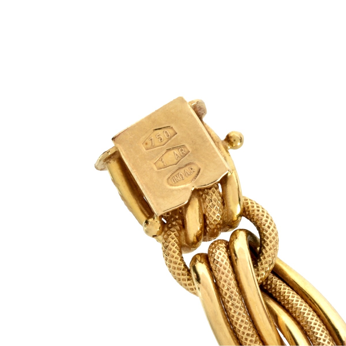 Vintage Italian 18 Karat Yellow Gold Link Bracelet. Stamped 750, Italian hallmark. Measures 8-1/2" L, 7/16" W. Approx. weight: 24.11 grams. Condition: Good vintage condition. For additional information and/or WhatsApp video please contact our resident GIA Graduate Gemologist, Russ Kodner at 954.650.5030 Estimate: $500.00 - $700.00 Domestic Shipping: $40.00