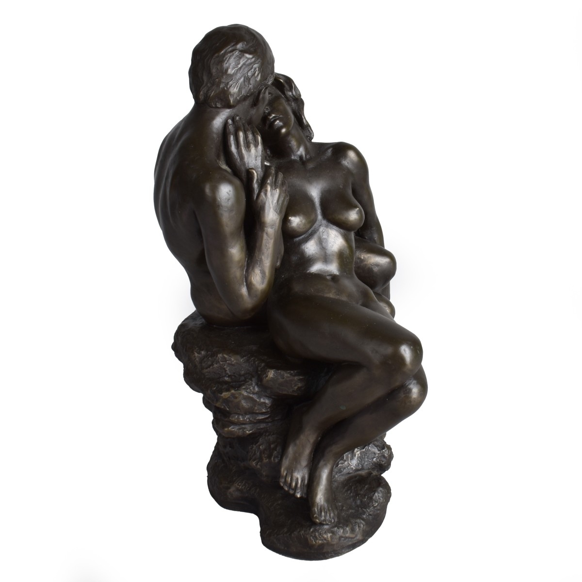 Roland Chadwick, British (20th century) Bronze Style Composition Sculpture "Lovers" Signed on the Obverse Side. Overall measures 9-1/4" x 6-1/4" x 5-1/4". Provenance: The Orianne Collins Collection. A large portion of proceeds of this sale will be donated to Ms Collinsí charity of choice, the "Never Give Up Foundation" which fills in the gaps needed to build a more inclusive future for those with disabilities like Spinal Muscular Atrophy. Condition: Good condition. Estimate: $50.00 - $150.00 Domestic Shipping: $78.00