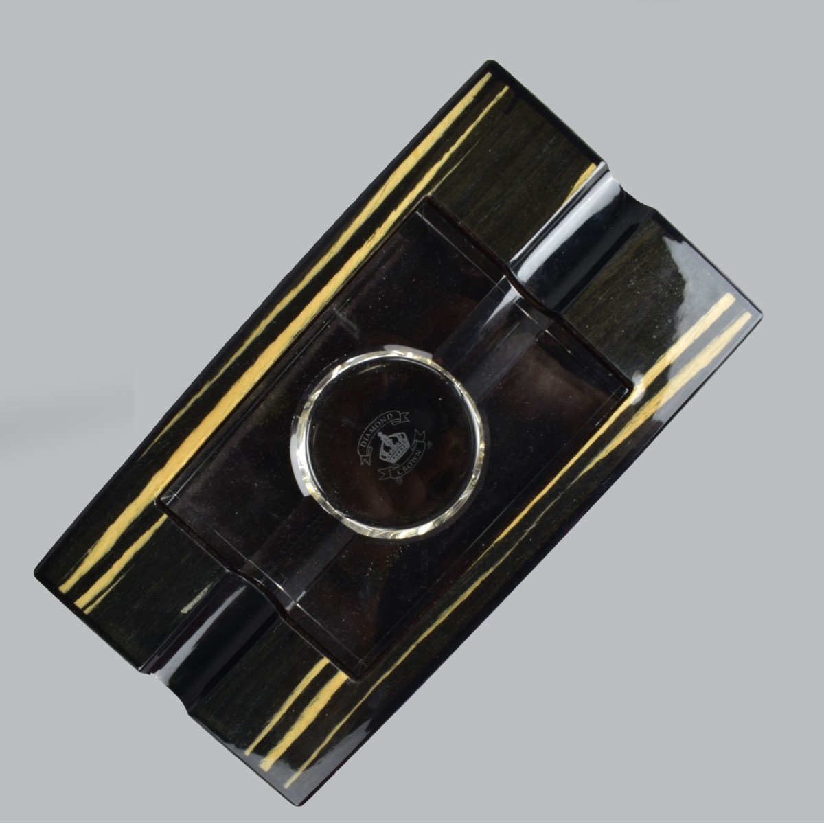 Six Assorted Desk Items. Two "Palace" Ashtrays Measures 4" Triangle x 1", Becara Spain Cigar Ashtray, Measures 6-1/8 x 7-1/2" x 1-3/8". A Diamond Crown Cigar Laminate and Crystal Ashtray, Measures 10-5/8" x 5-3/4" x 1-1/2", Gastebucher for Globus Leather Register, and a Box of Davidoff Cigars 3 missing. Provenance: The Orianne Collins Collection. A large portion of proceeds of this sale will be donated to Ms Collinsí charity of choice, the "Never Give Up Foundation" which fills in the gaps needed to build a more inclusive future for those with disabilities like Spinal Muscular Atrophy. Condition: Good Condition Estimate: $100.00 - $200.00 Domestic Shipping: $72.00
