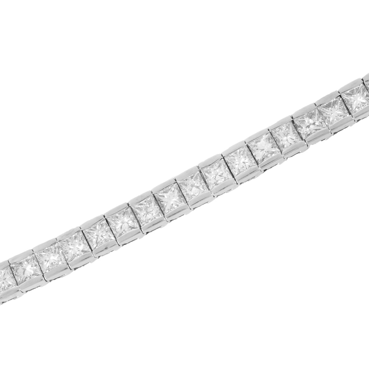 Fine Vintage Approx. 23.00 Carat TW Thirty-eight Princess Cut Diamond and Platinum Line Bracelet. Diamonds F-G color, VS1-VS2 clarity. Diamonds approx. .60-.70 carat each. Bracelet measures 6-7/8" L. 1/4" W. Approx. weight: 40.82 grams. Condition: Very good condition. For additional information and/or WhatsApp video please contact our resident GIA Graduate Gemologist, Russ Kodner at 954.650.5030 Estimate: $25,000.00 - $30,000.00 Domestic Shipping: $40.00