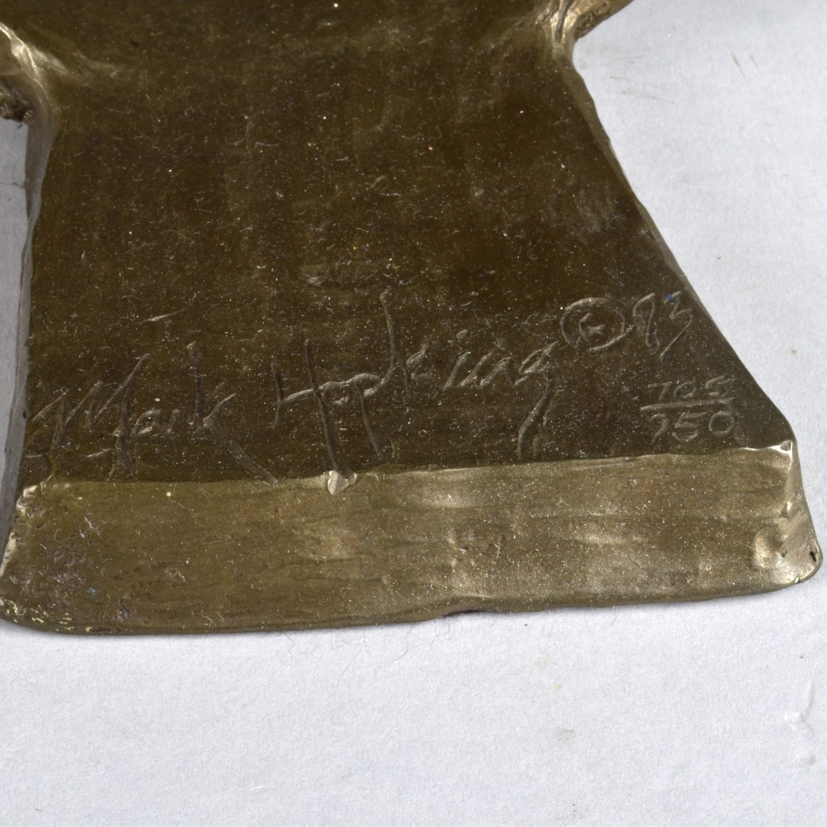 Mark Hopkins, American (20/21st century) Bronze Sculpture "Jazz Drummer, 1993" Signed and Numbered 705/750. Measures 11-1/8" x 11-3/4" x 7-3/4". Provenance: The Orianne Collins Collection. A large portion of proceeds of this sale will be donated to Ms Collinsí charity of choice, the "Never Give Up Foundation" which fills in the gaps needed to build a more inclusive future for those with disabilities like Spinal Muscular Atrophy. Condition: Good condition. Estimate: $300.00 - $500.00 Domestic Shipping: $115.00