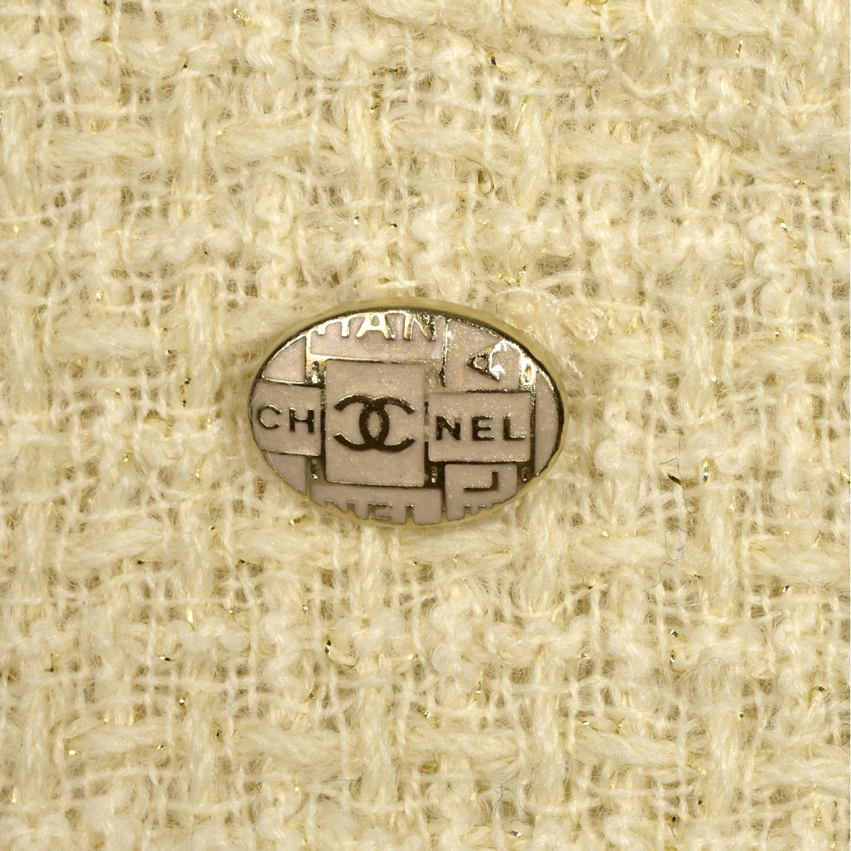 Chanel Cream Tweed Wool Dress with accent of metallic gold, Chanel button to left waist. Size FR 38, 37-1/2"L. Serial # P59543V41285. Provenance: The Orianne Collins Collection. A large portion of proceeds of this sale will be donated to Ms Collinsí charity of choice, the "Never Give Up Foundation" which fills in the gaps needed to build a more inclusive future for those with disabilities like Spinal Muscular Atrophy. Condition: Good Condition Estimate: $500.00 - $1500.00 Domestic Shipping: $58.00