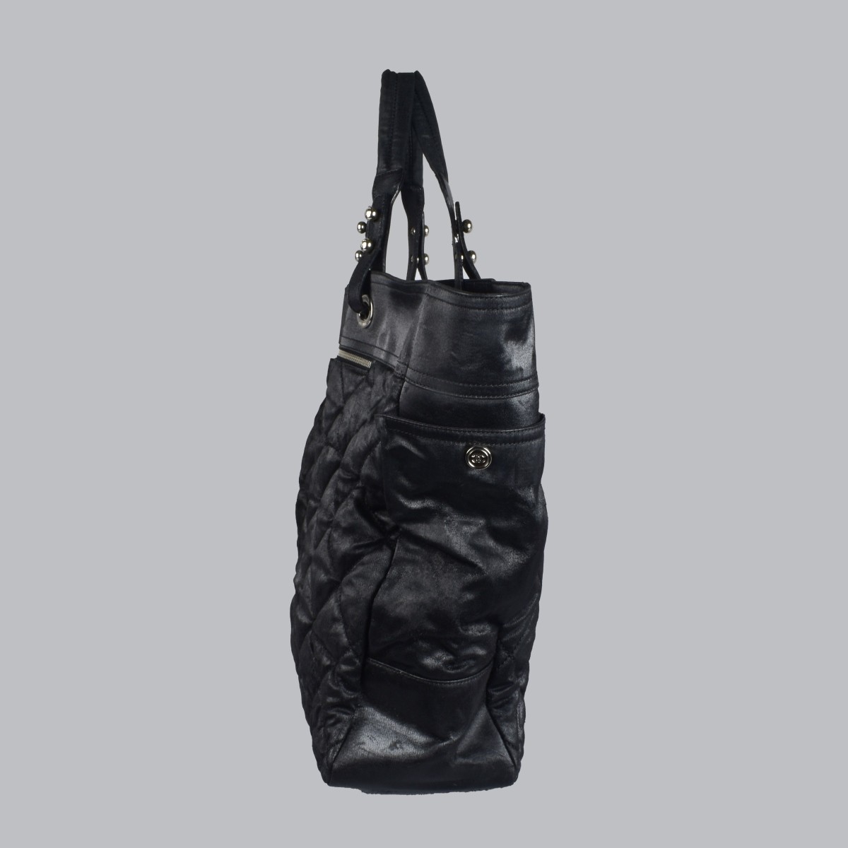 Chanel Paris Biarritz Coated Quilted Canvas Tote Bag. Silver tone hardware with hanging double c monogram. Stitched mark on interior. Measures 15" x 21" x 5-1/2". Provenance: The Orianne Collins Collection. A large portion of proceeds of this sale will be donated to Ms Collinsí charity of choice, the "Never Give Up Foundation" which fills in the gaps needed to build a more inclusive future for those with disabilities like Spinal Muscular Atrophy. Condition: Good used condition. Needs a routine cleaning. Estimate: $1000.00 - $3000.00 Domestic Shipping: $75.00