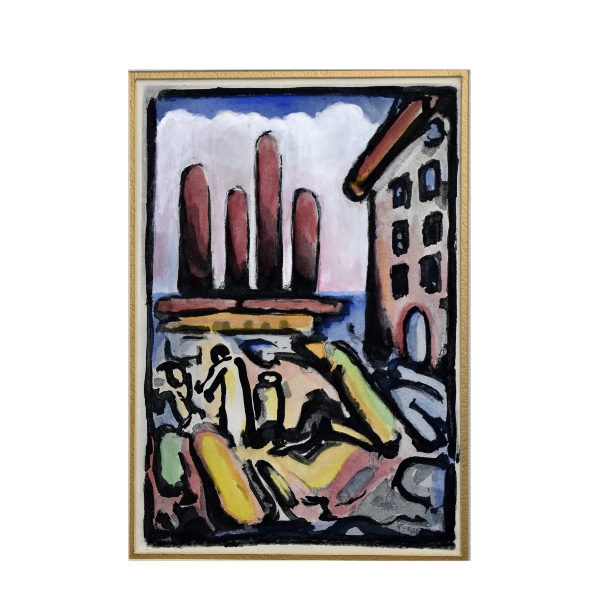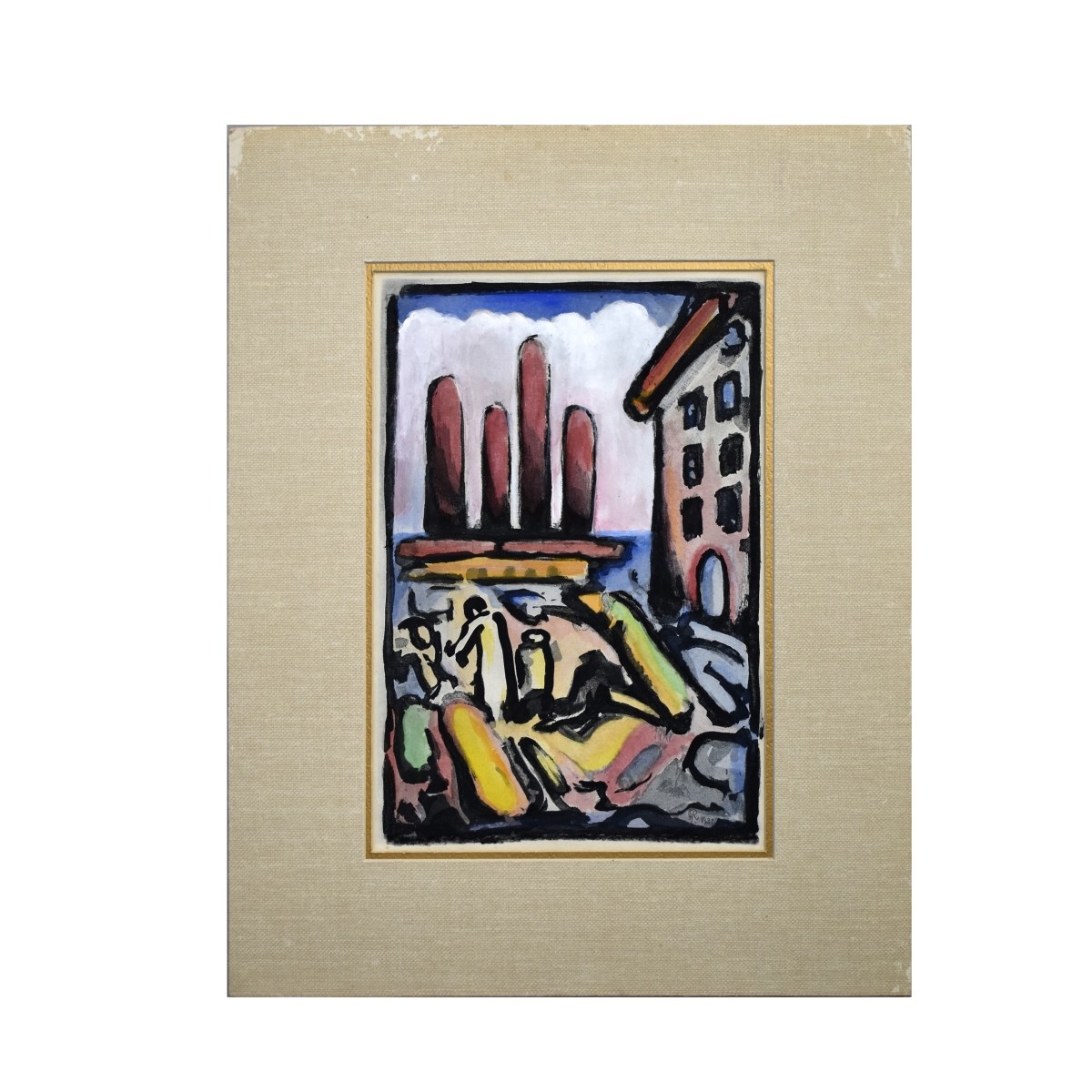 Georges Rouault, French (1871 - 1958) Etching and Aquatint on Paper "Village Scene" Signed and Dated Lower Right. Unframed. Set on a matted surface. Sight measures 11-1/2" x 8". Overall measures 18-1/2" x 14-1/2". Condition: Some toning and very light foxing to the paper. Estimate: $100.00 - $200.00 Domestic Shipping: $95.00