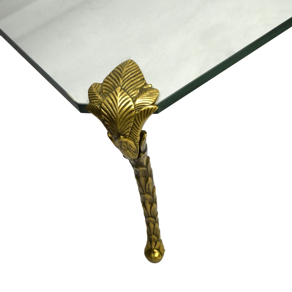 Manner of P.E. Guerin Mid Century Brass and Glass Coffee Table. Measures 17-1/4" x 48" x 24". Condition: Glass has a small chip to an area on the bottom otherwise good condition. Estimate: $200.00 - $400.00 Domestic Shipping: Third party