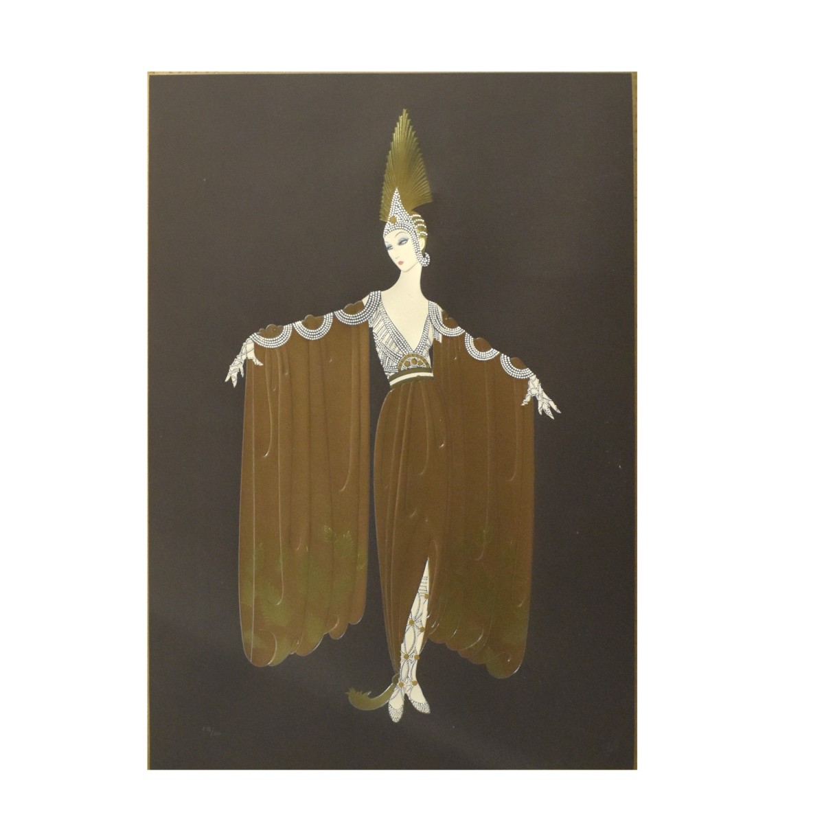 Erte, Russian / French (1892 - 1990) Serigraph on Paper with Embossing "Gown Orientale" Signed and Numbered 276/300. Lavon Art Gallery label en verso. Measures 38-1/4" x 28". Frame measures 48" x 37-3/4". Condition: Good condition. Estimate: $800.00 - $1200.00 Domestic Shipping: Third party