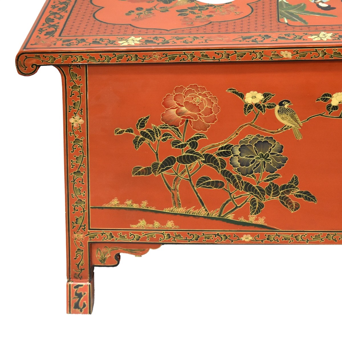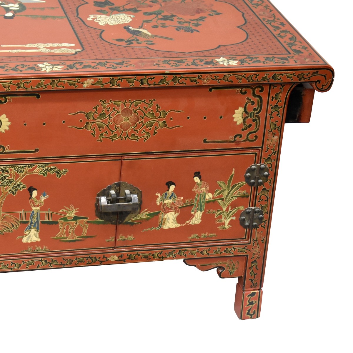 Mid Century Chinese Ming Style Red Lacquered Chest with Double Sided Doors. Measures 21" x 50" x 20-1/8". Condition: Good condition. Estimate: $200.00 - $400.00 Domestic Shipping: Third party