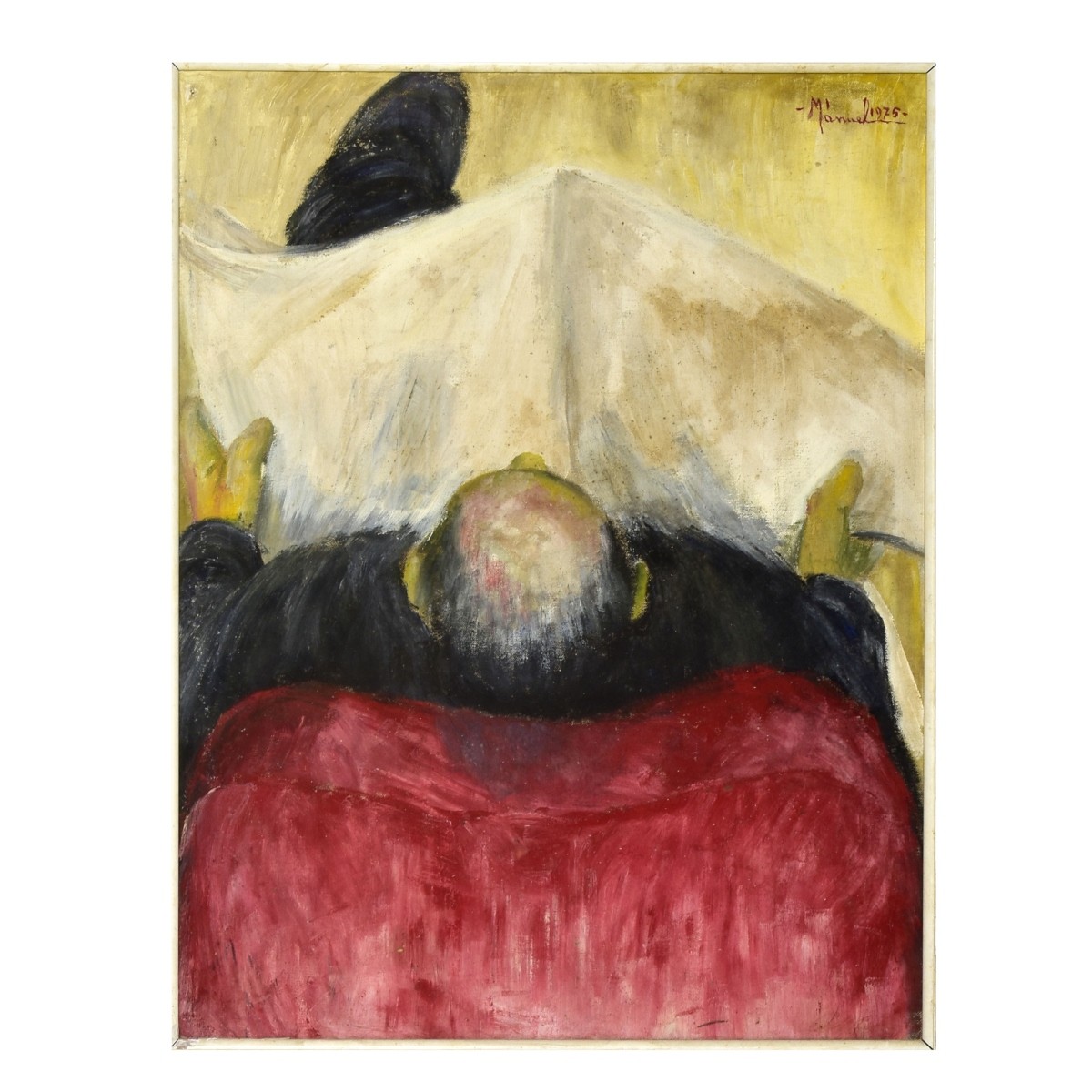Manuel Bordogna, Venezuelan (20th Century) Oil on Canvas "The Senator" Signed and Dated 1975 Top Right Corner. Inscribed en verso. Measures 25-1/2" x 20". Frame measures 29-3/4" x 24". Condition: Good condition. Estimate: $100.00 - $250.00 Domestic Shipping: $145.00
