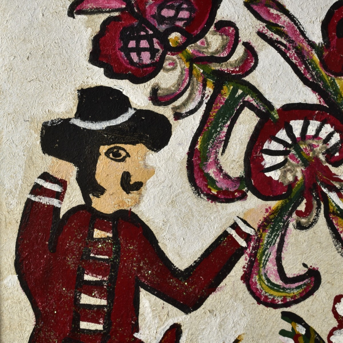 Felicinda Salazar, Venezuelan (1907 - 2000) Oil on Board "Couple With Birds and Flowers" Signed Lower Center. Sight measures 23-5/8" x 31-1/2". Frame measures 28-1/8" x 36". Condition: Good condition. Estimate: $50.00 - $200.00 Domestic Shipping: Third party