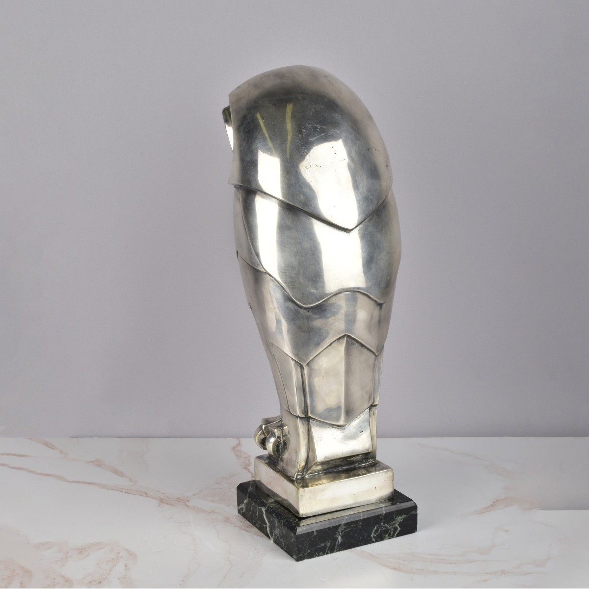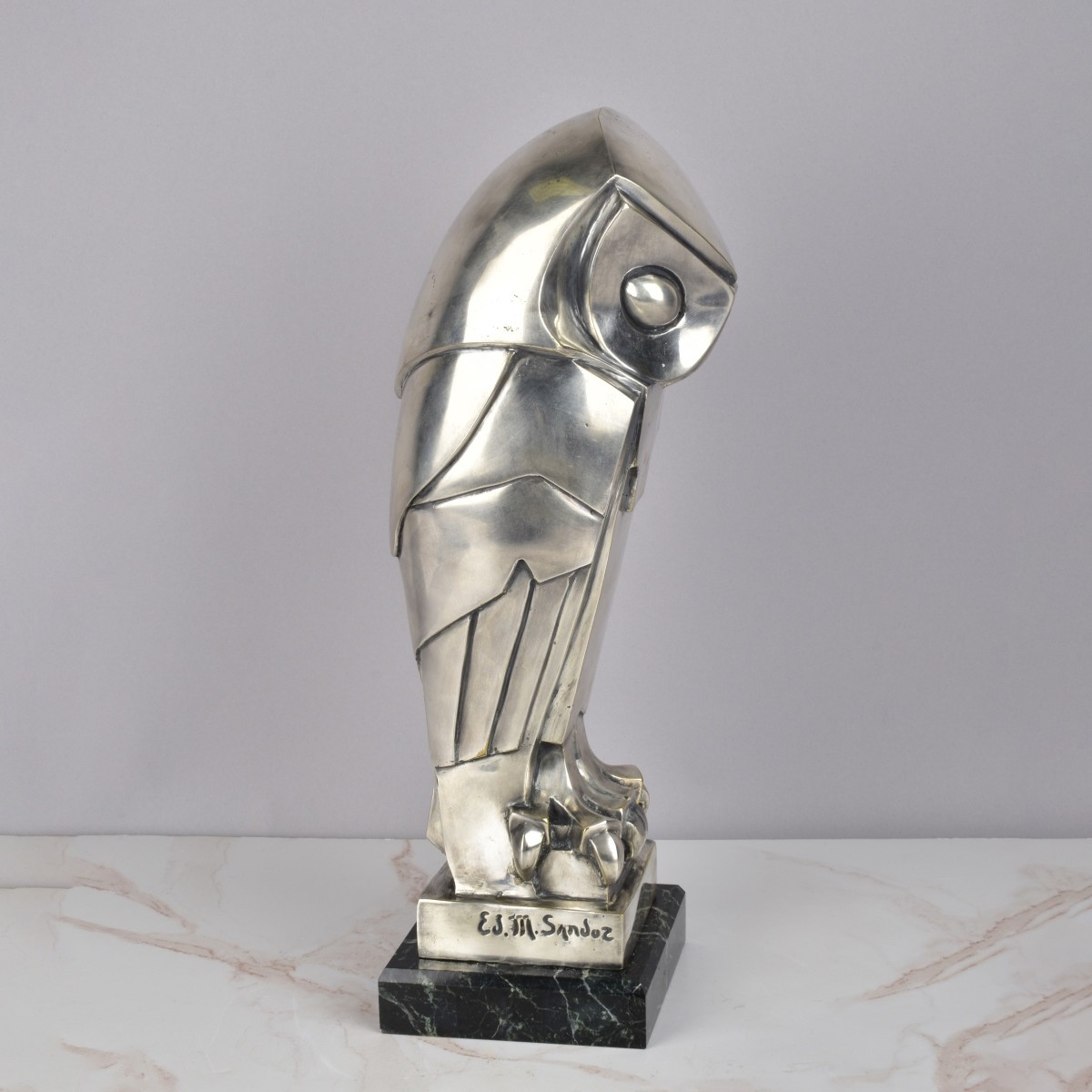 Edouard-Marcel Sandoz, Swiss (1881 - 1971) Large Bronze Sculpture Presented on a Marble Base "Owl" Signed. Foundry: Susse Freres. Overall measures 16" x 5-1/2" x 6-1/2". Condition: Good condition. Estimate: $5000.00 - $7000.00 Domestic Shipping: $225.00