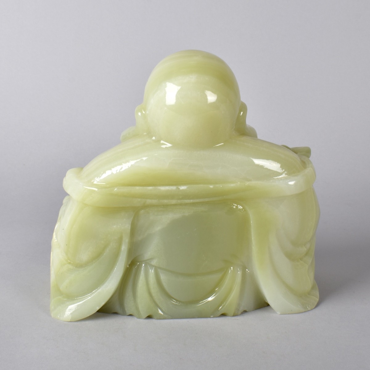 Happy Buddha Onyx Carving. Measures 7-1/2" H x 8" W x 4-1/2" W Condition: Good Condition Estimate: $800.00 - $150.00 Domestic Shipping: $88.00