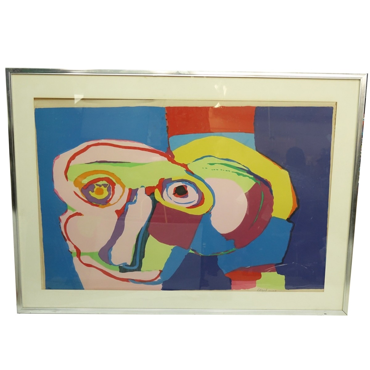 Karel Appel, American (1921-2006) Color Lithograph "Dream-Coloured Head". Signed and dated 1970. Measures 27" x 40-1/4" (sight), frame measures 34-1/2" x 47-3/4". Condition: Toning. Estimate: $700.00 - $1500.00 Domestic Shipping: Third party