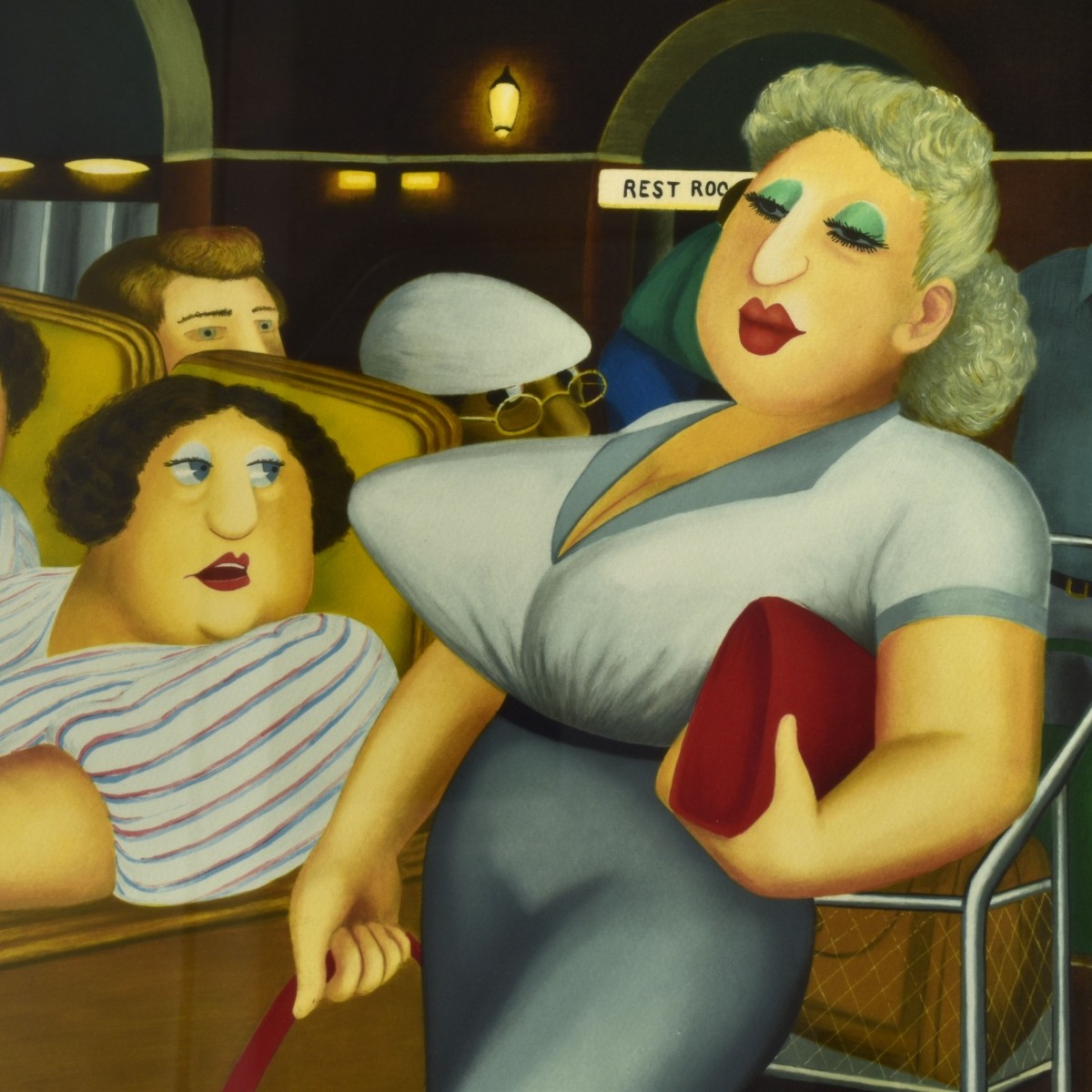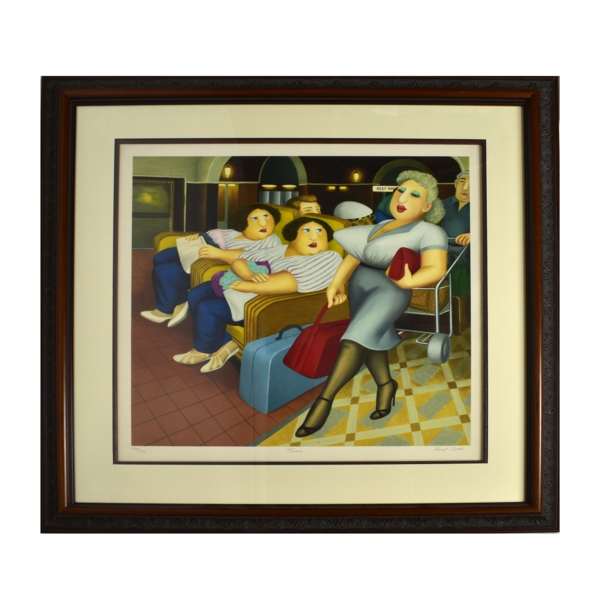 Beryl Cook, English (1916 or 26 - 2008) Color Lithograph on Paper "Twins" Signed and Numbered 234/300. Sight measures 24" x 24". Frame measures 38" x 37-1/8". Condition: Good condition. Estimate: $400.00 - $800.00 Domestic Shipping: Third party