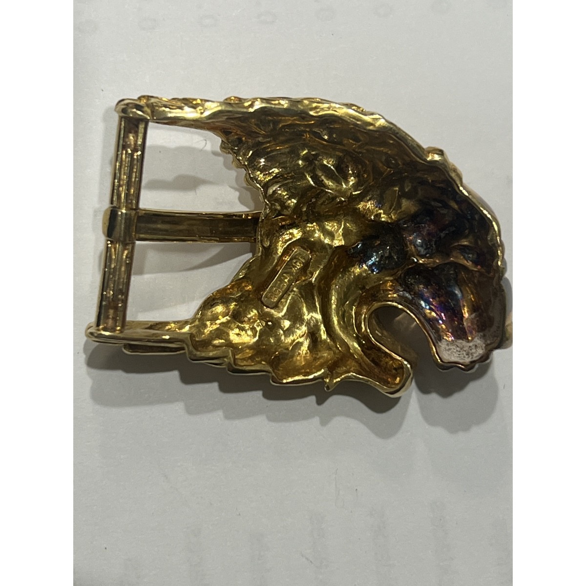 Vintage Signed Webb 18 Karat Yellow Gold Lion Belt Buckle. Measures 1-3/4" x 1`-1/2". Approx. weight: 28.0 grams. Condition: Good vintage condition. Needs cleaning. Estimate: $1800.00 - $2200.00 Domestic Shipping: $40.00