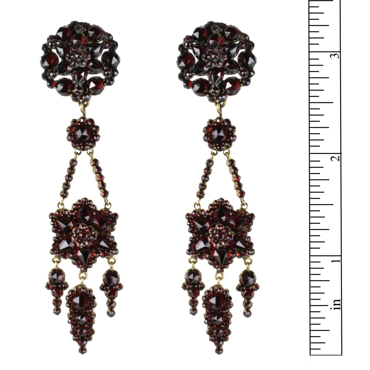 Fine Antique Victorian Garnet and Gold Filled Pendant Earrings. Measure 3-1/4" L, 5/8" W. Approx. total weight: 15.28 grams. Condition: Good antique condition. Estimate: $250.00 - $500.00 Domestic Shipping: $40.00