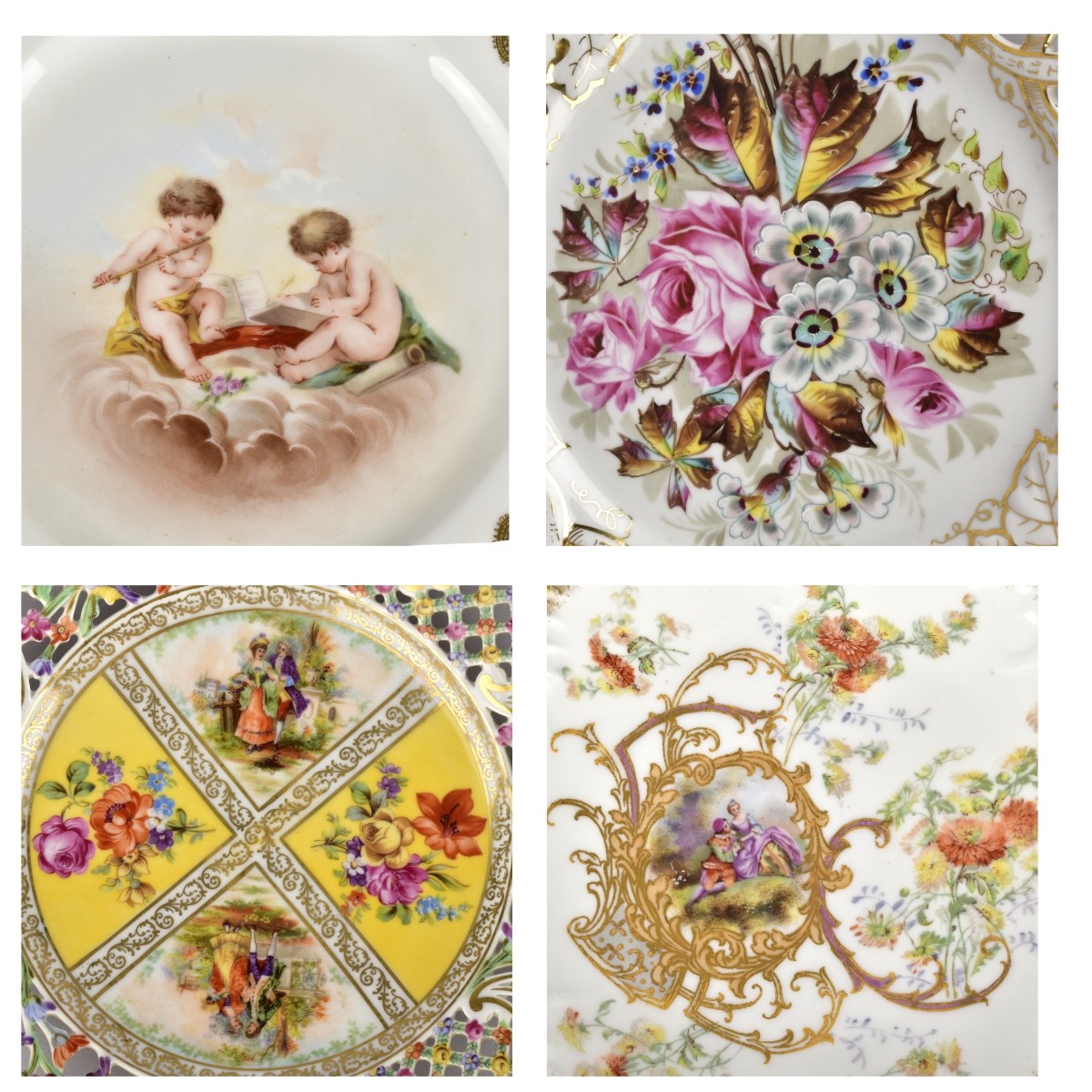 Lot of Four Vintage Continental Cabinet Plates. Two are Limoges and one is Bavarian. Largest measures 9-1/2" diam. Condition: Rubbing to the gilt on a few plates Estimate: $100.00 - $150.00 Domestic Shipping: $66.00