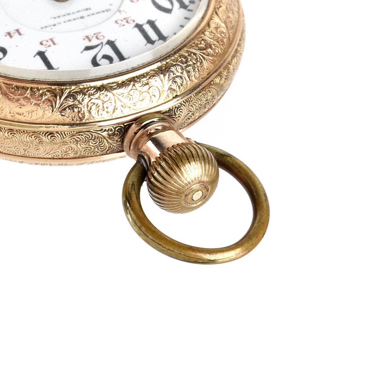 Antique Henry Birks & Sons, Montreal Gold Filled Pocket Watch. Manual wind movement. Case measures 54mm. Intricate engraved floral design to case. Approx. gross weight: 120.92 grams. Condition: Good antique condition. Running. Please note the gallery does not warranty the running condition of watches. Estimate: $100.00 - $300.00 Domestic Shipping: $40.00