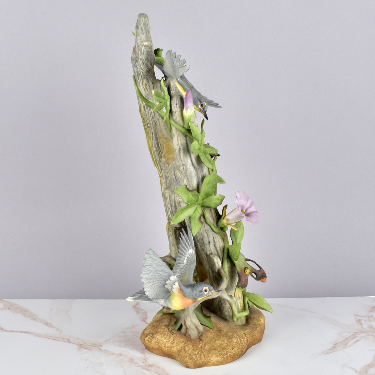 Large Limited Edition Boehm Porcelain Bird and Flower Figurine. Signed. Measures 15-3/4" x 9". Condition: Good condition. Estimate: $100.00 - $300.00 Domestic Shipping: Third party