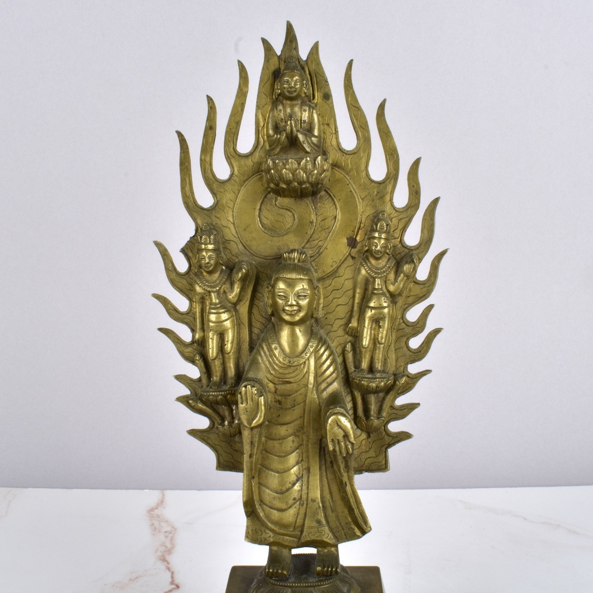 Antique Chinese Bronze Buddha Sculpture. Measures 10-5/8" x 4-1/2". Condition: Good condition. Estimate: $500.00 - $700.00 Domestic Shipping: $62.00