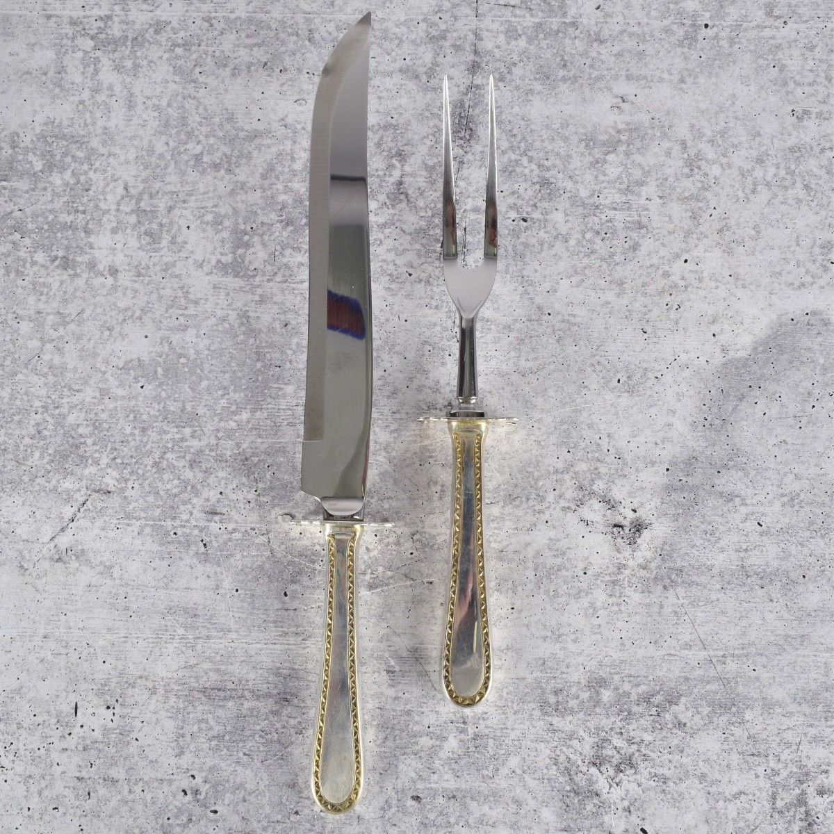Item Condition: Good condition, some light scratching. Carving knife blade has dent.