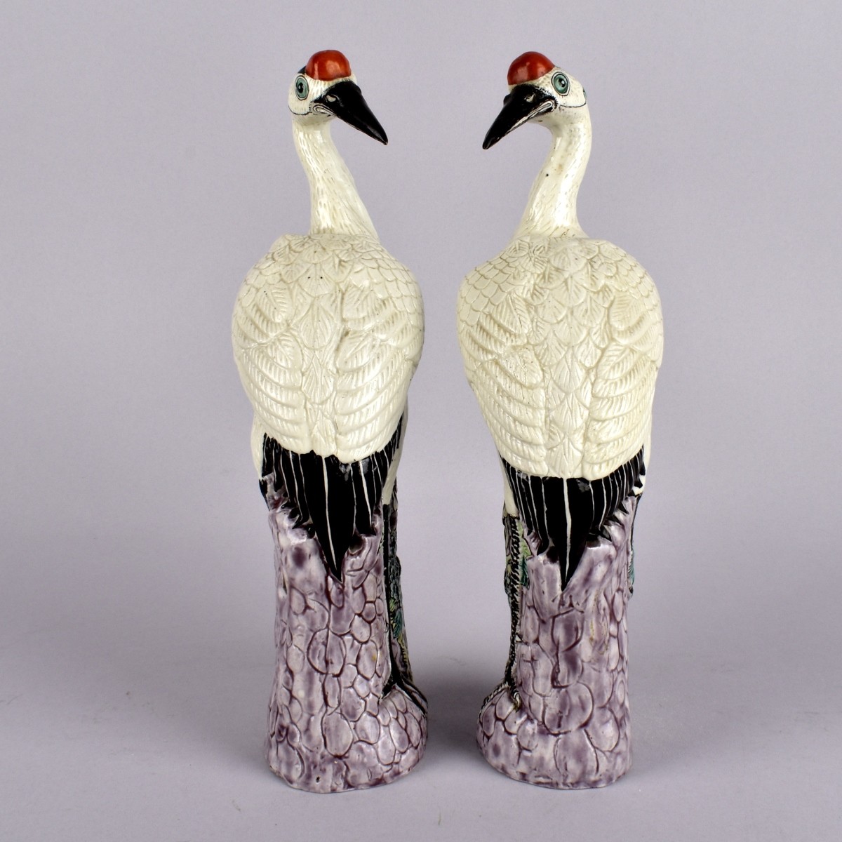 Pair of Chinese Export Republic Period Glazed Porcelain Cranes. Unmarked. Measures 11-3/4" x 4" x 3-1/4". Condition: Good condition. Estimate: $200.00 - $300.00 Domestic Shipping: $85.00