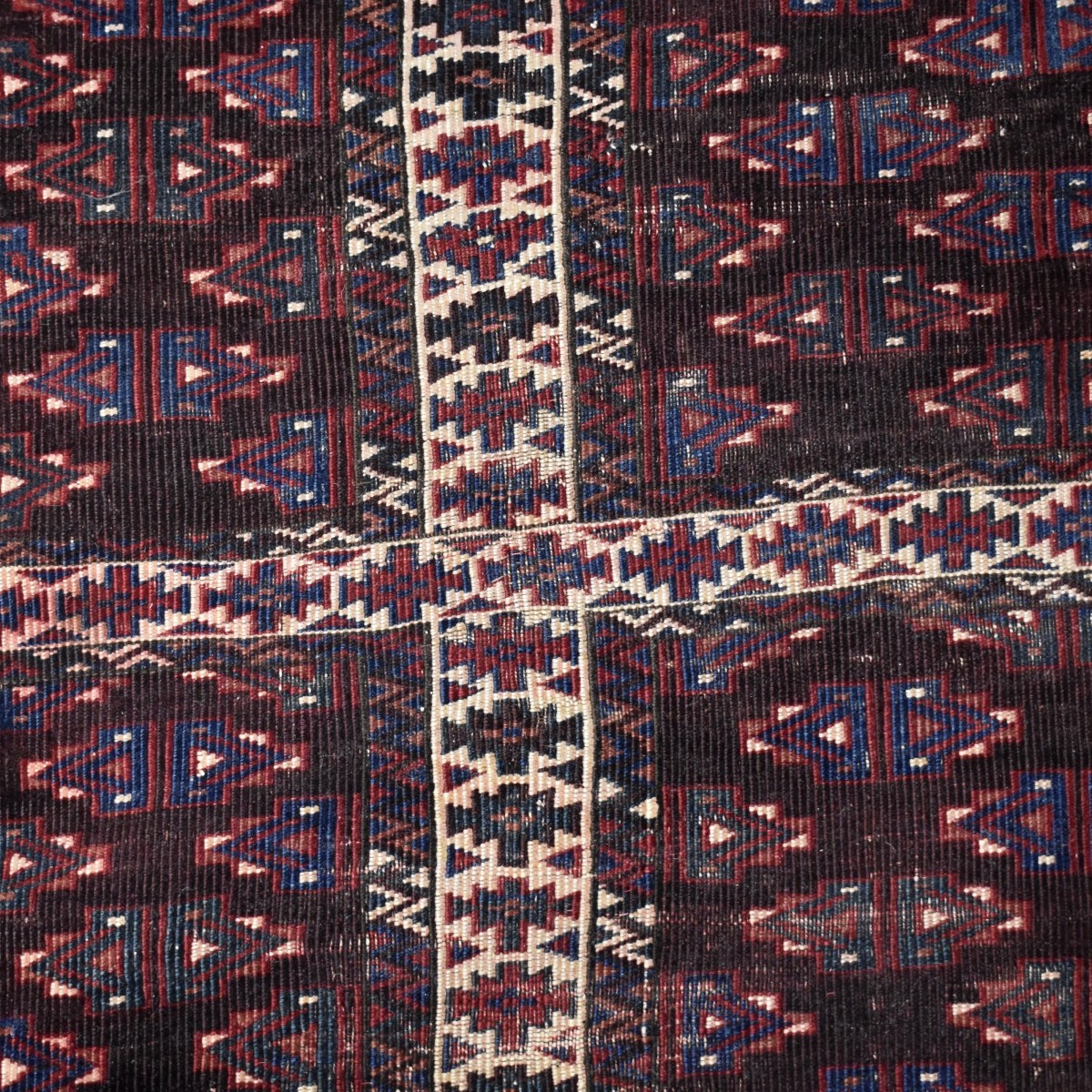 Antique Turkoman Tekke Wool Rug. Geometric Design. Measures 62" x 46". Condition: Good antique condition. Estimate: $100.00 - $500.00 Domestic Shipping: $78.00