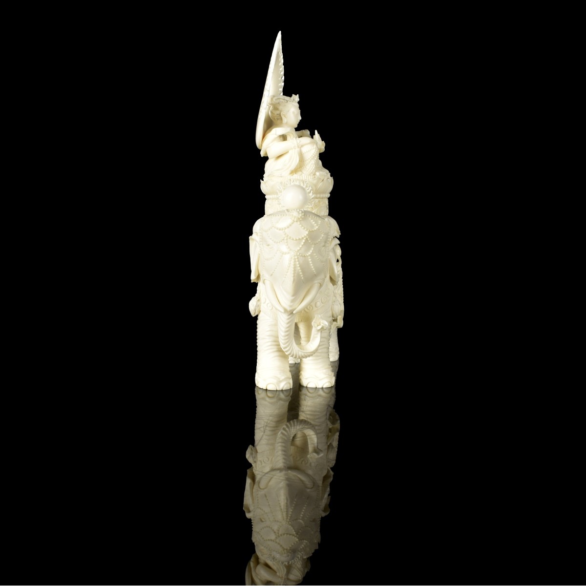Vintage Chinese Finely Carved Figurine of a Guanyin Riding Upon an Elephant Dressed in Ceremonial Procession Gear. Measures: 9-1/2" H, 6-1/2" W, 2-1/2" D. We Will Not Ship This Item Outside of the State of Florida. Anyone Having This Item Shipped Must Have a Florida Address or the Item will not be Shipped. Condition: Very good condition. Estimate: $600.00 - $900.00 Domestic Shipping: $58.00