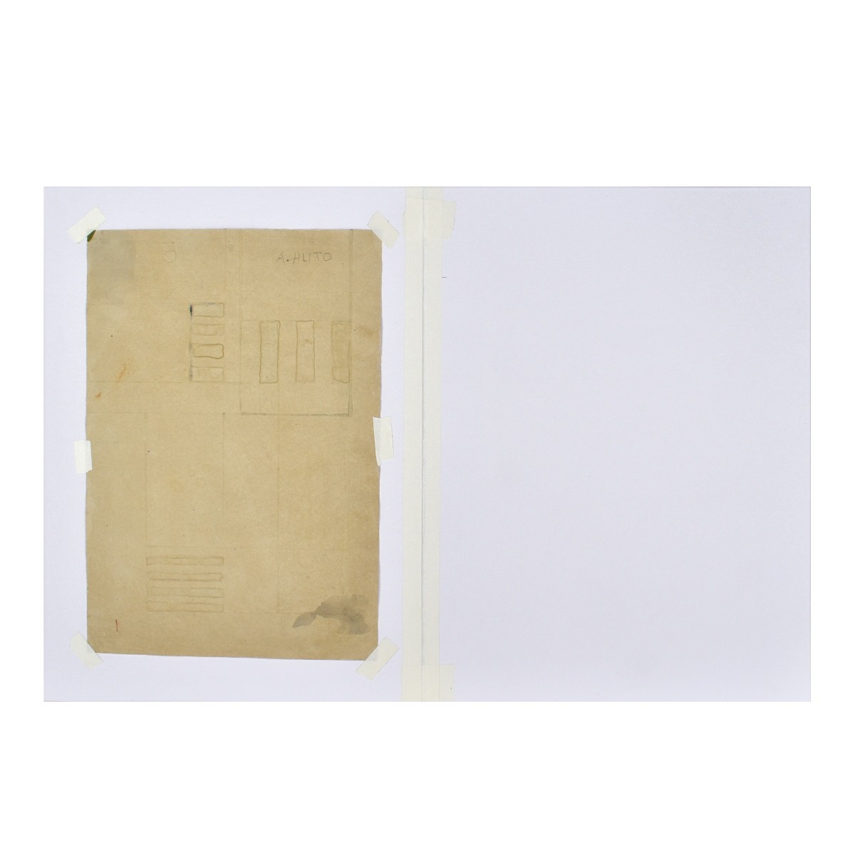 Attributed to: Alfredo Hlito, Argentinian (1923 - 1993) Ink and watercolor on paper "Composition". unsigned to front, signed in pencil en verso. Measures 11" x 7-1/2", matting measures 13-3/8 H " x 10". Condition: Good condition, some wrinkling a few small holes and fading. Estimate: $50.00 - $150.00 Domestic Shipping: $62.00