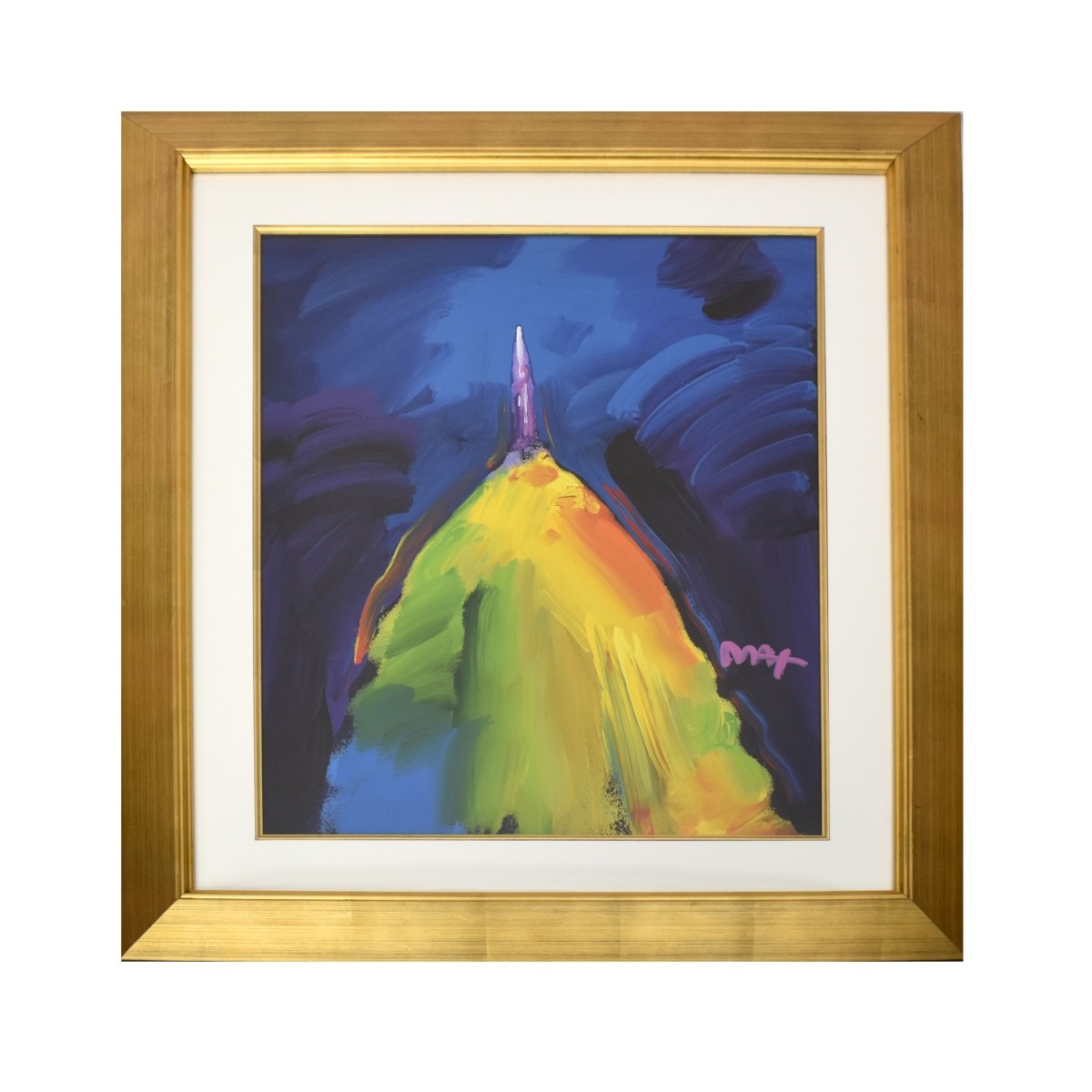 Peter Max, American/German (b.1937) Original Mixed Media on Paper, Titled "A pollo XI: Booster Rocket Ver. I". Signed "Max" and presented in well made framed. Original Certificate of Authenticity will be provided. Viewing area measures: 29" H, 23-3/4" W, frame measures: 42-1/4" H, 36" W. Condition: Very good condition. Estimate: $4000.00 - $6000.00 Domestic Shipping: Third party.