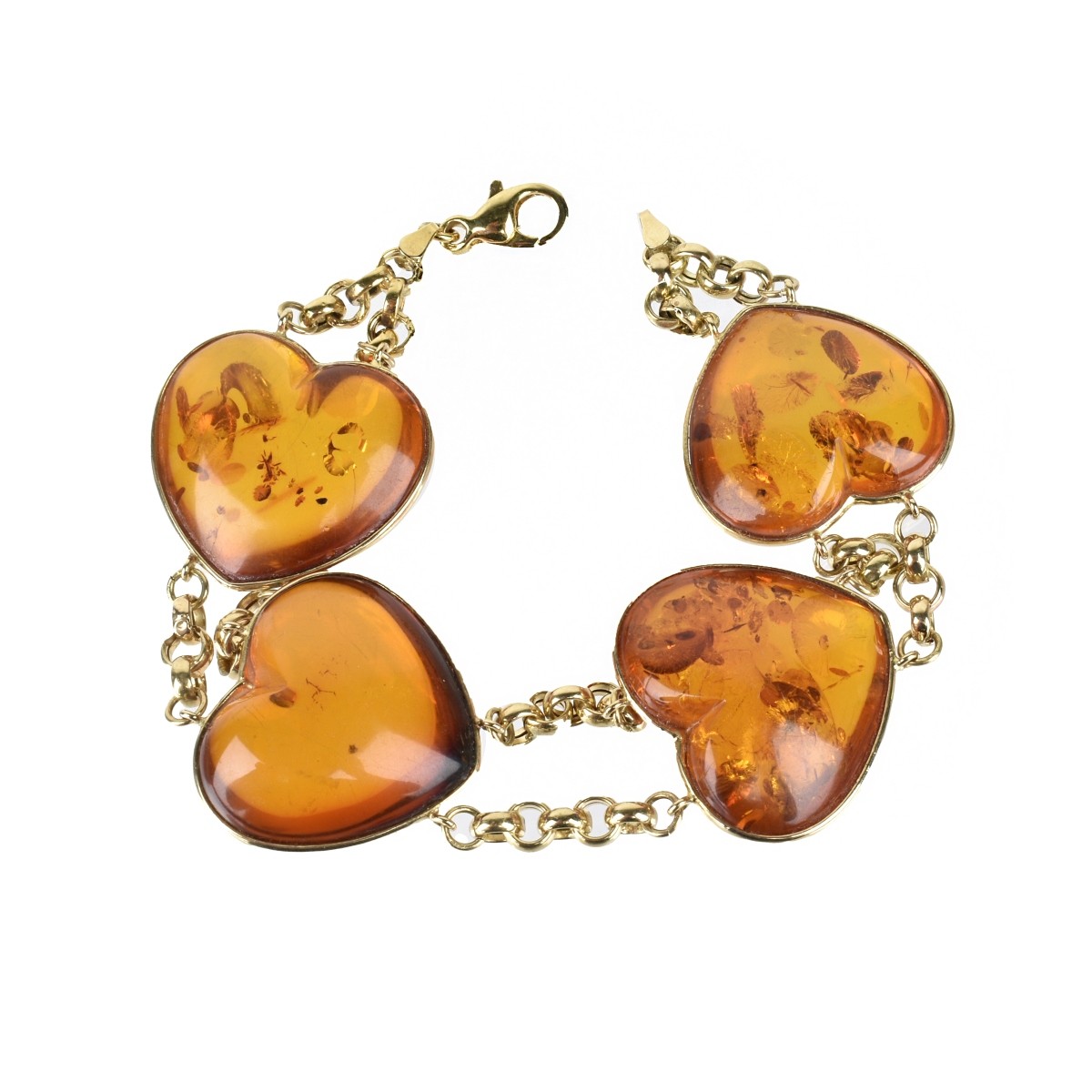 Vintage 18 Karat Yellow Gold and Amber Hearts Link Bracelet. Stamped 750. Measures 8-1/2" L, 1-1/8" W. Approx. weight: 31.51 grams. Condition: Very good vintage condition. Estimate: $300.00 - $500.00 Domestic Shipping: $40.00