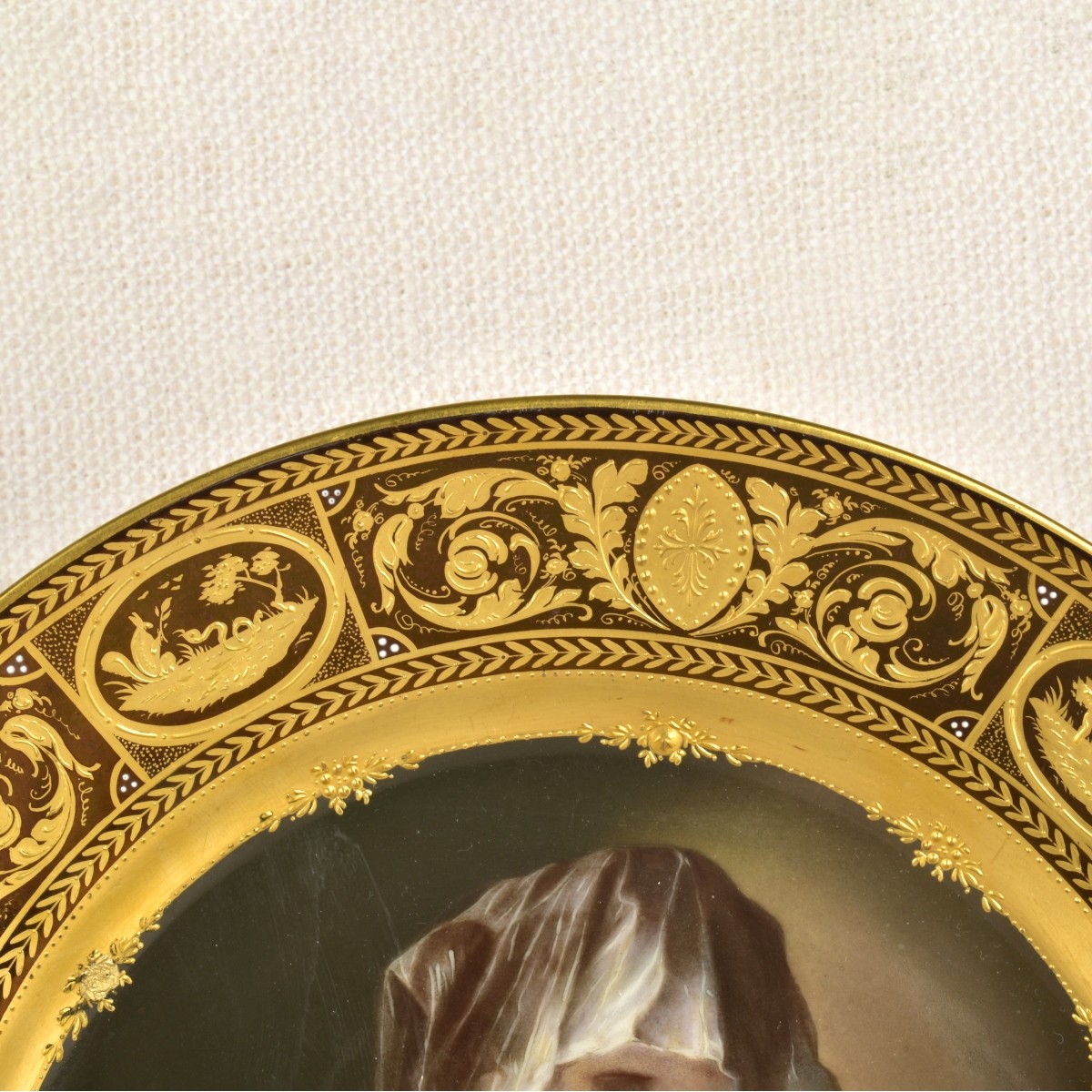 Royal Vienna Portrait Plate "Vestalin " Gilt Hand Painted Portrait Plate. Artist signed. Marked on the back with the Royal Vienna beehive mark under glaze. Circa 19/20th century. Measures: 9-1/2" D. Condition: Good condition. Estimate: $500.00 - $800.00 Domestic Shipping: $88.00