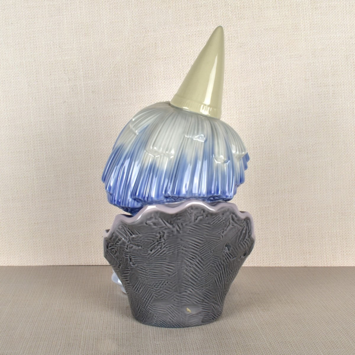 Lladro Figurine of a Sad Clown Wearing a Party Hat With His Hands to his Face. Properly marked on the bottom. Measures: 12-1/4" H, 6" W, 8" D. Condition: Good condition. Estimate: $100.00 - $200.00 Domestic Shipping: $58.00