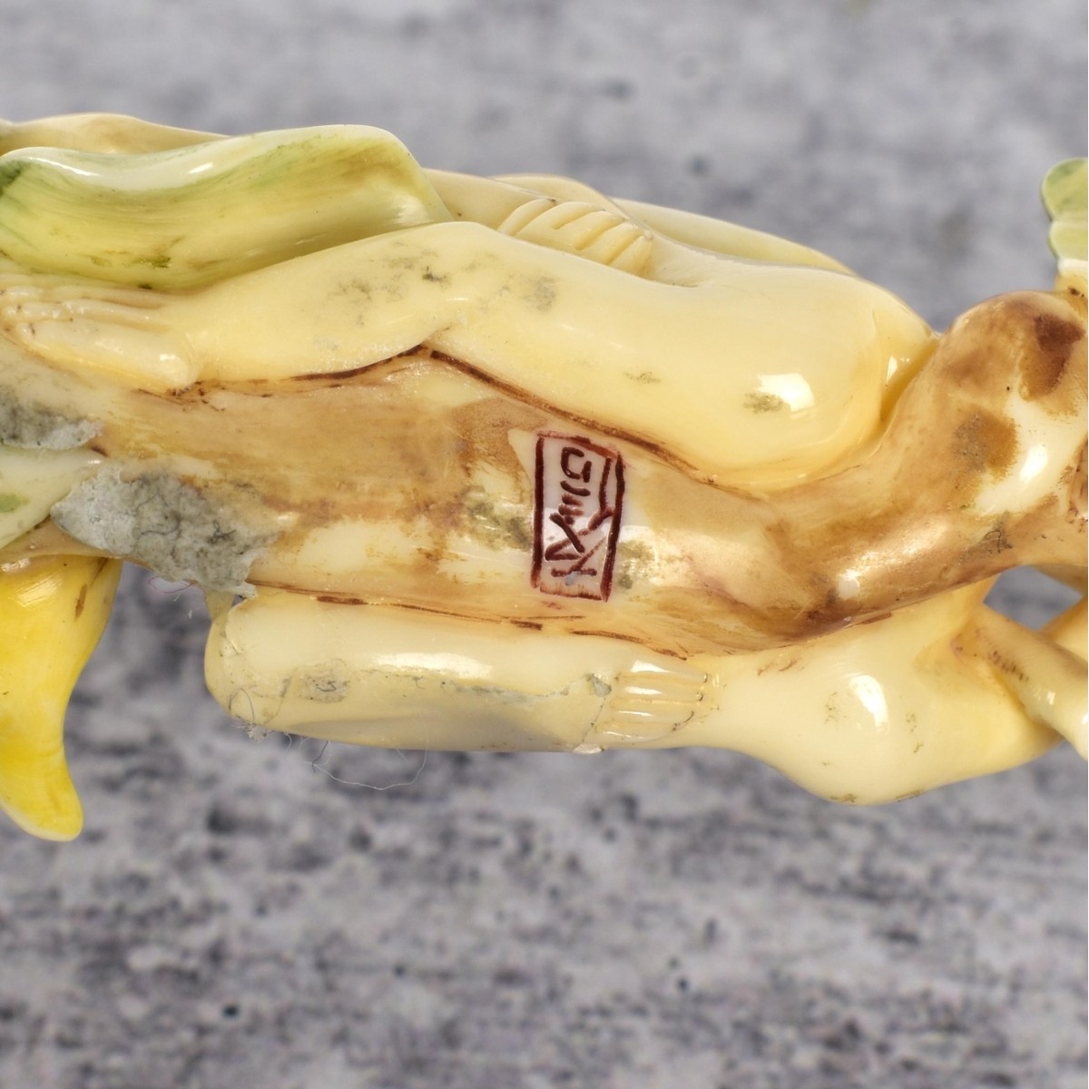 Two (2) Finely Carved Japanese Polychromed Erotic Figurines. Measures: 5-1/4" L, 1-1/4" W, 3/4" D. Condition: Must Have a Florida Address or the Item will not be Shipped. We will Not Knowingly Sell Endangered Species outside of Legal Channels. Estimate: $300.00 - $500.00 Domestic Shipping: $40.00 (FL only).