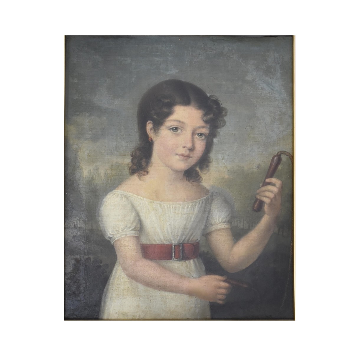 19th Century Follower of Jeanne-Philiberte Ledoux, French (1767-1840) Oil on Canvas, Portrait of a Young Girl. In a finely carved and gilt wood Louis XVI style frame. Unsigned. Measures 22" H, 18" W; frame measures 31-1/2" H, 25-1/4" W. Provenance: Christie's New Your, 1993. Christie's labels to verso. Ex Collection de M. Leroux, Paris. Condition: Good antique condition. Estimate: $2000.00 - $4000.00\ Domestic Shipping: $185.00