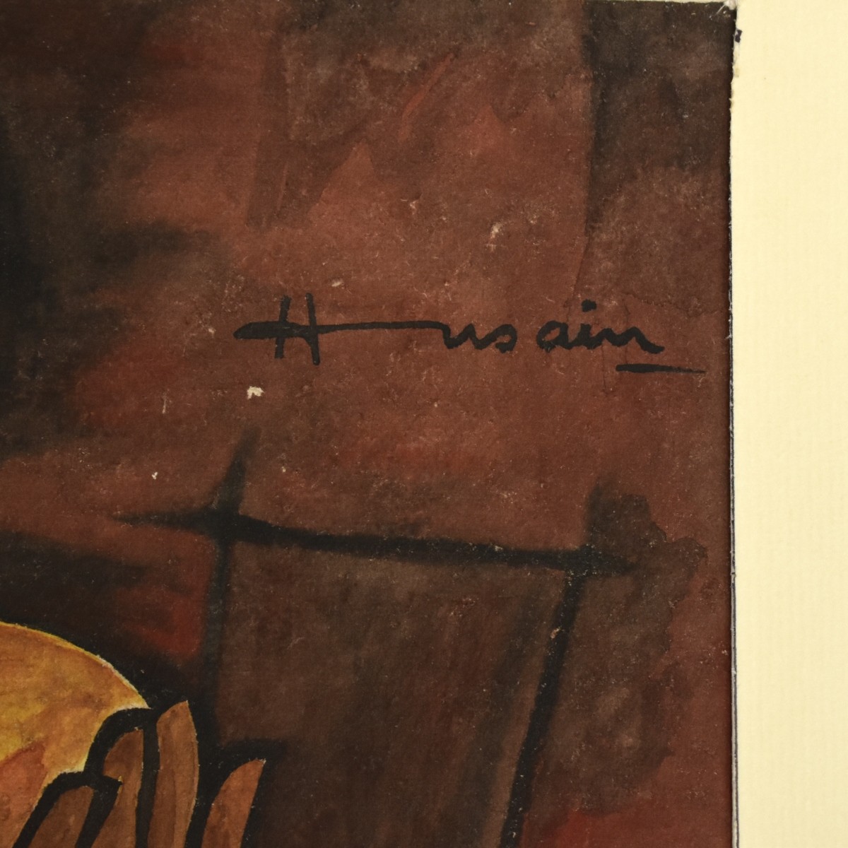 Attributed to Maqbool Fida Husain, Indian (1911-2011) Watercolor on Wove Paper of Ganesha, (Hindu God Half Elephant-Half Human). Artist signed. Unframed. Provenance: From an avid Indian art collector, purchase in India. Image area measures: 11-3/4" H, 14-3/4" W. A work listed as "attributed to:" the respective artist has not been authenticated by a recognized expert on the artist in question. We offer such a work without warranty as to authenticity. Condition: Good condition. Estimate: $3000.00 - $5000.00 Domestic Shipping: $115.00