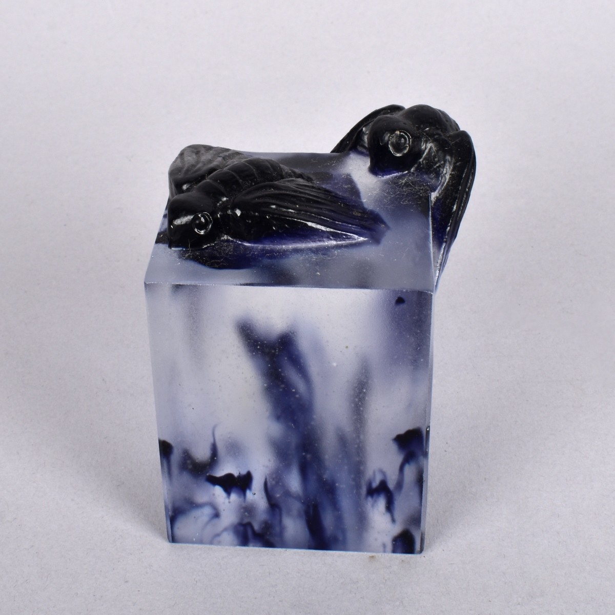Pate de Verre Moth Paperweight. Signed "G. Argy Rousseau" to the side. Measures: 2-3/4" H, 2-1/4" W, 2-1/4" D. Condition: Very good condition. Estimate: $200.00 - $400.00 Domestic Shipping: $40.00