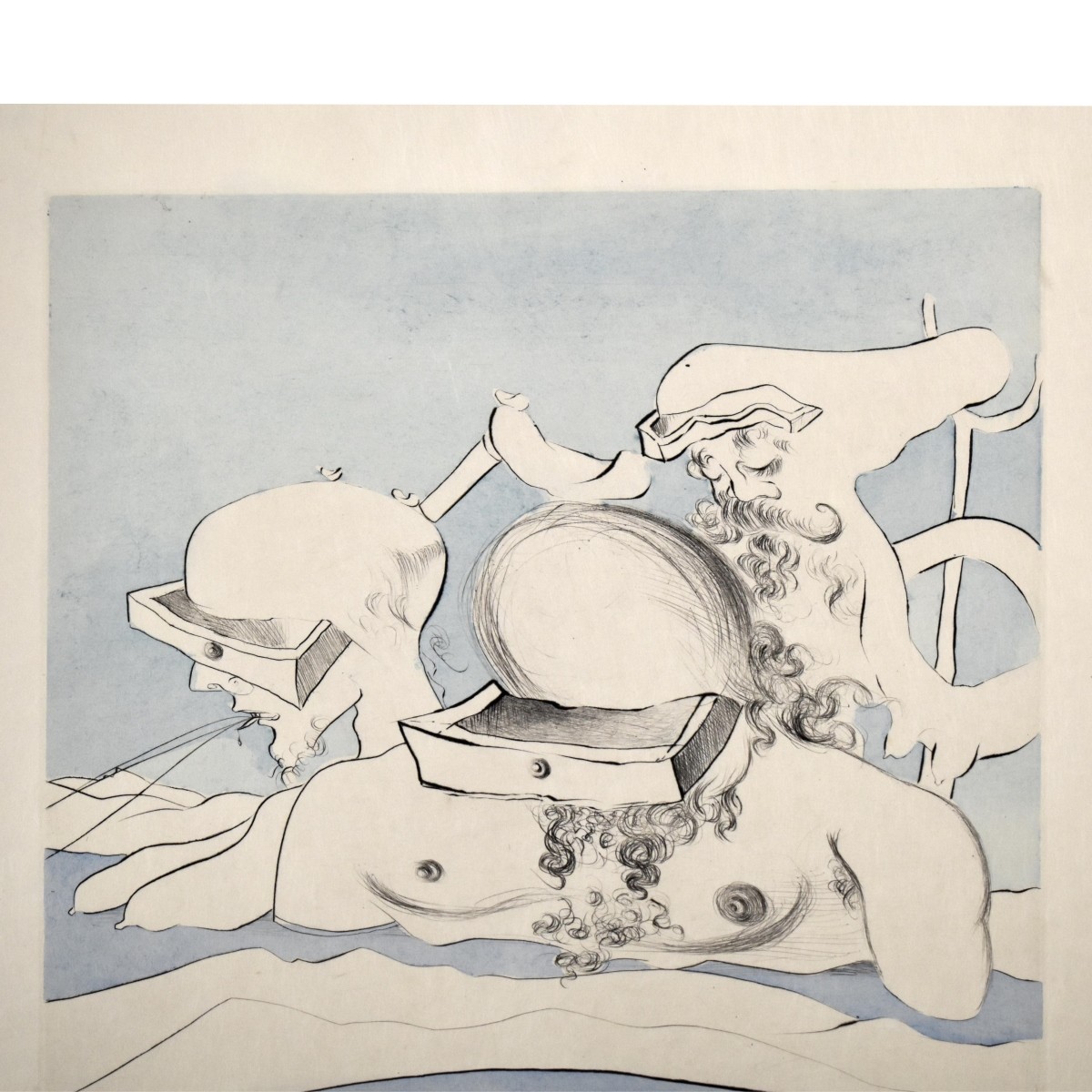 Salvador Dali, Spanish (1904-1989) "Flung Out Like a Fag-End by the Big Wigs". Lithograph on Archers paper. Signed and marked E.A. (artists proof) in pencil. Unframed. Sheet size measures: 26 1-2" H, 20-1/4" W. Condition: Good condition. Estimate: $700.00 - $900.00 Domestic Shipping: Third party