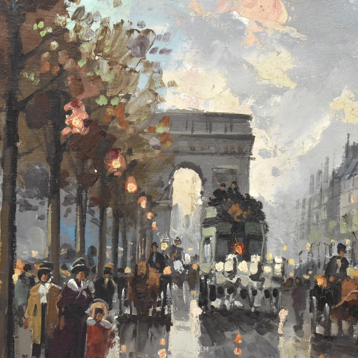 Attributed to Antoine Blanchard, (French:1910-1988) Framed Oil on Canvas a Street View of the Monument to Charles de Gaulle "Arc de Triompe". Signed bottom right hand corner. Viewing area measures: 19-3/8" H, 23-1/4" W, frame measures: 28-3/4" H 33" W. A work listed as "attributed to:" the respective artist has not been authenticated by a recognized expert on the artist in question. We offer such a work without warranty as to authenticity. Condition: Good condition. Estimate: $300.00 - $500.00 Domestic Shipping: Third Party