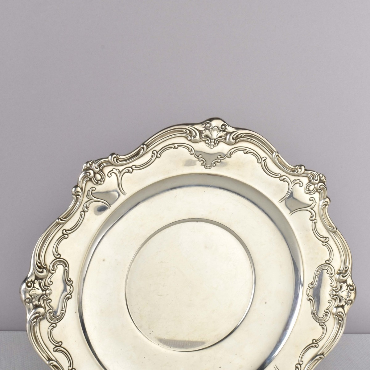 Gorham "Chantilly-Duchess" Sterling Silver Serving Round Tray. Stamped "Gorham Sterling 746" on the bottom. Measures: 1" H, 10-1/2" Dia. Approximate weight: 13.30 troy ounces. Condition: Good condition. Estimate: $100.00 - $200.00 Domestic Shipping: $68.00
