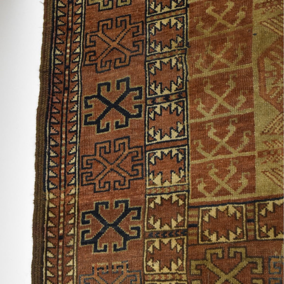 Semi-Antique Bokhara Wool Rug. Measures: 74" x 64". Condition: Good used condition, few cigarette burns. Estimate: $100.00 - $300.00 Domestic Shipping: $75.00