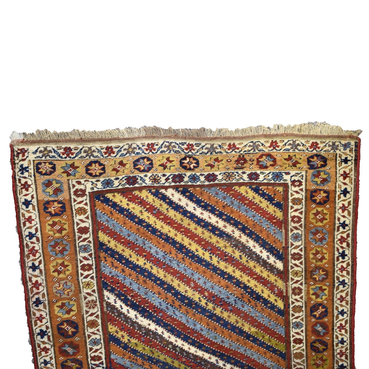 Vintage Persian Kazak Wool Rug. Measures: 112" x 52". Condition: Good vintage condition, some bear spots, old repairs. Estimate: $100.00 - $300.00 Domestic Shipping: $125.00